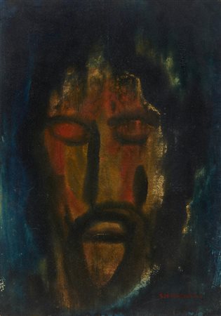 GIANDANTE X (1900 - 1984) Volto. Encausto su cartone. Cm 35,00 x 50,00. Firma in basso a destra. Certificato di autenticità Luca Sforzini Arte, Casteggio. Anni '60. Esposizioni: Giandante X. Un grande del '900, Galleria Luca Sforzini Arte, Casteggio, 4 febbraio-29 aprile 2013. Lievi difetti.