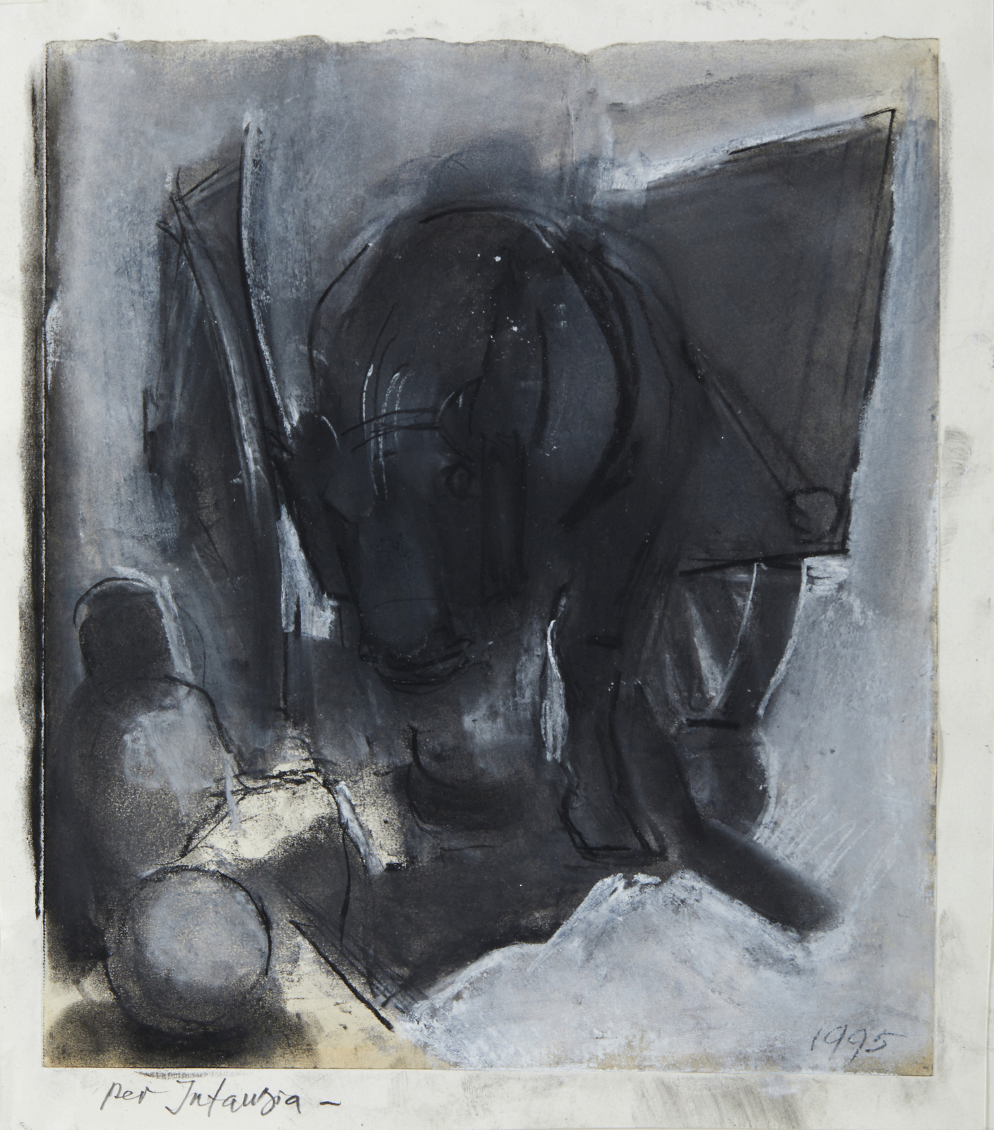 FRANCESE FRANCO (1920 - 1996) Studio per infanzia. 1995. Tempera su carta. Cm 26,00 x 30,00. Titolo e anno in basso a matita. Lievi difetti. Cornice presente