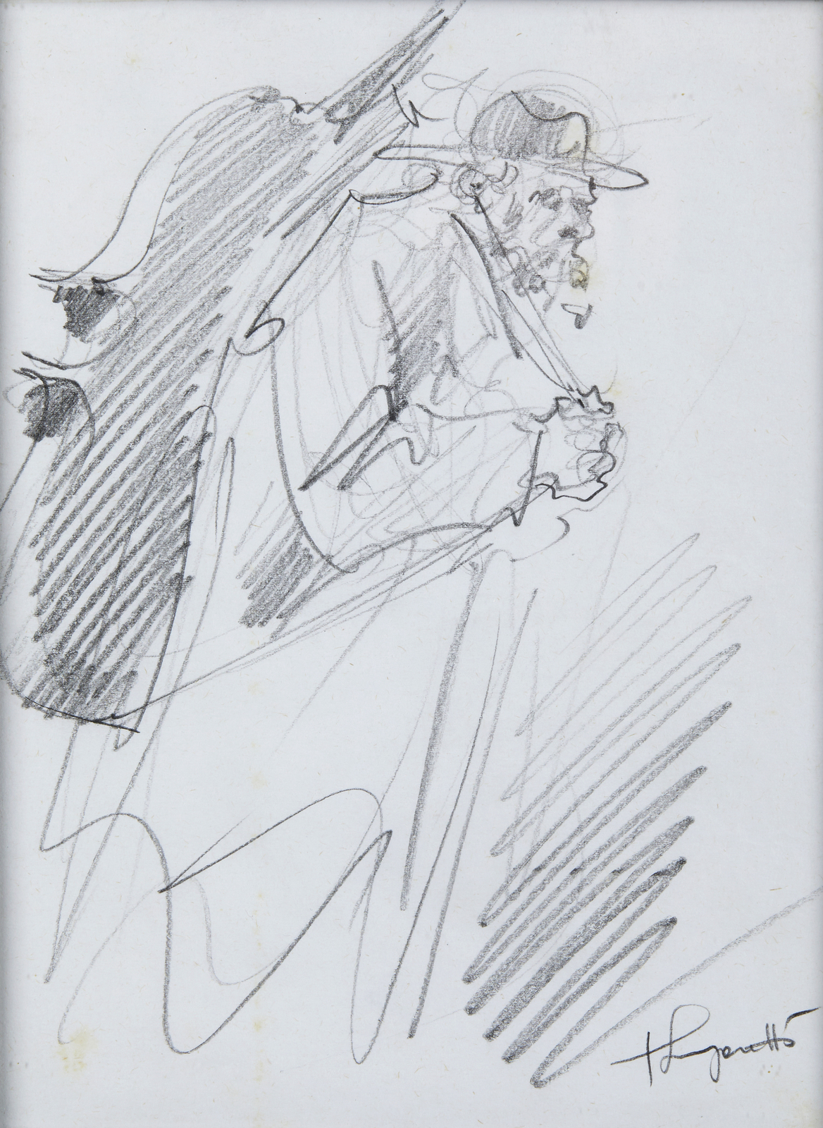LONGARETTI TRENTO (n. 1916) Viandante. 1988. Matita su carta. Cm 17,00 x 21,00. Firma in basso a destra a matita. Certificato di provenienza Arte Più Studio d'Arte, Messina. Lievi difetti. Cornice presente