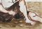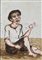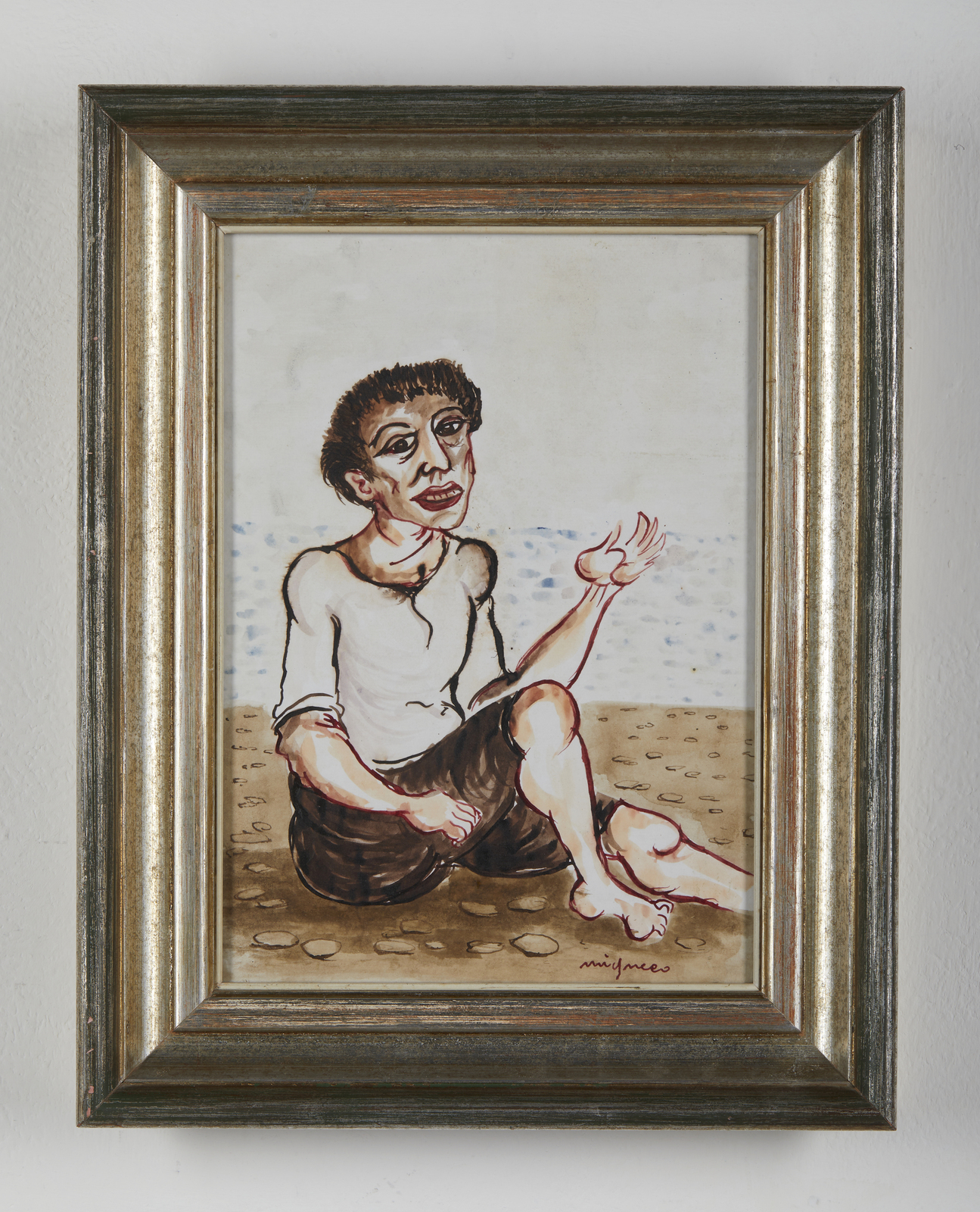 MIGNECO GIUSEPPE (1908 - 1997) Pescatore. Tecnica mista su carta. Cm 22,00 x 28,00. Firma in basso a destra. Anni '90. Autentica dell'artista su fotografia con il timbro della Galleria Bonaparte, Milano. . Cornice presente