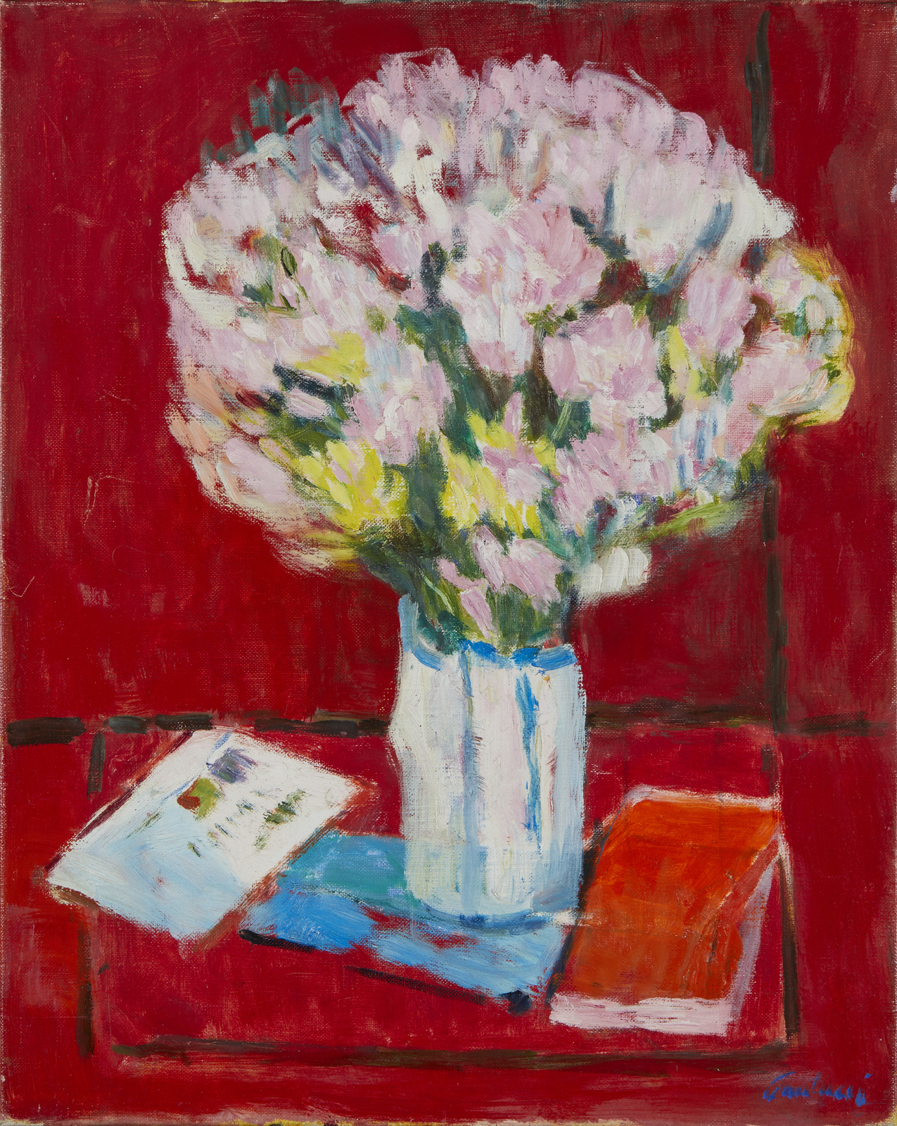 PAULUCCI ENRICO (1901 - 1999) Vaso con fiori. Olio su tela . Cm 40,00 x 50,00. Firma in basso a destra. Autentica dell'artista su fotografia con firma di Federico Riccio e il relativo numero d'inventario. Anni'70. Cornice presente