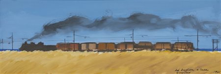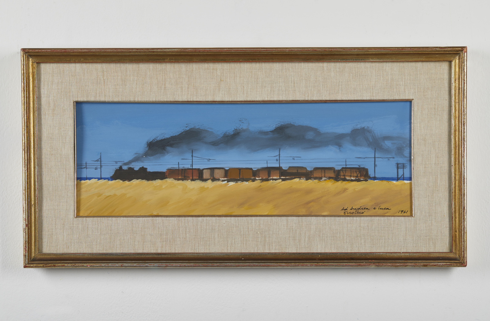 ENOTRIO (1920 - 1989) Senza titolo. . 1961. Olio su tela . Cm 60,00 x 25,00. Dedica, firma e anno in basso a destra. . Cornice presente