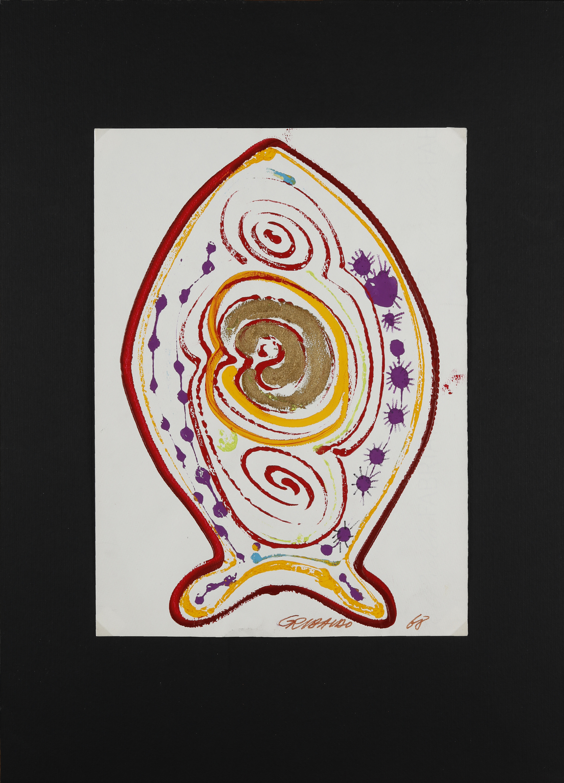 GRIBAUDO EZIO (n. 1929) Senza titolo. 1968. Tecnica mista su carta. Cm 23,00 x 32,00. Firma e anno in basso a destra.