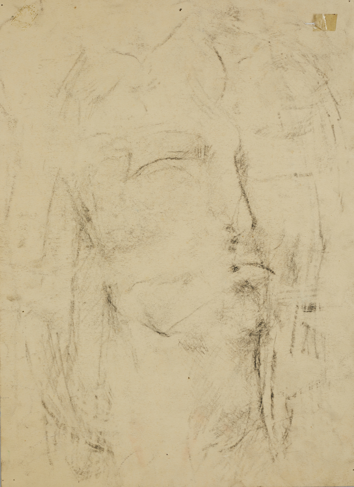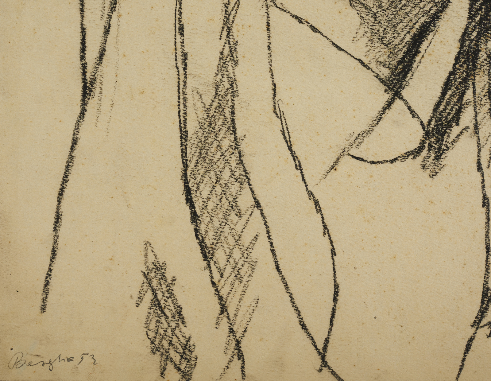 BASAGLIA VITTORIO (1936 - 2005) Senza titolo. 1953. Carboncino su carta. Cm 31,50 x 43,00. Firma e anno in basso a sinistra. Difetti.