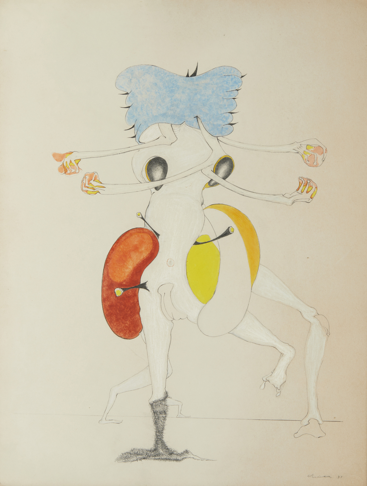 CHAVEZ GERARDO (n. 1937) Senza titolo. 1971. Tecnica mista su carta. Cm 50,00 x 65,00. Firma e anno in basso a destra. Cornice presente