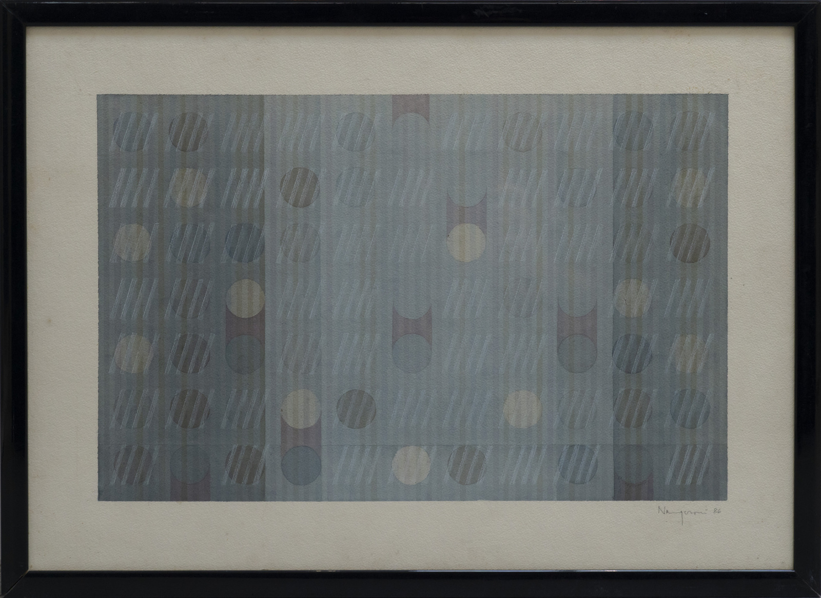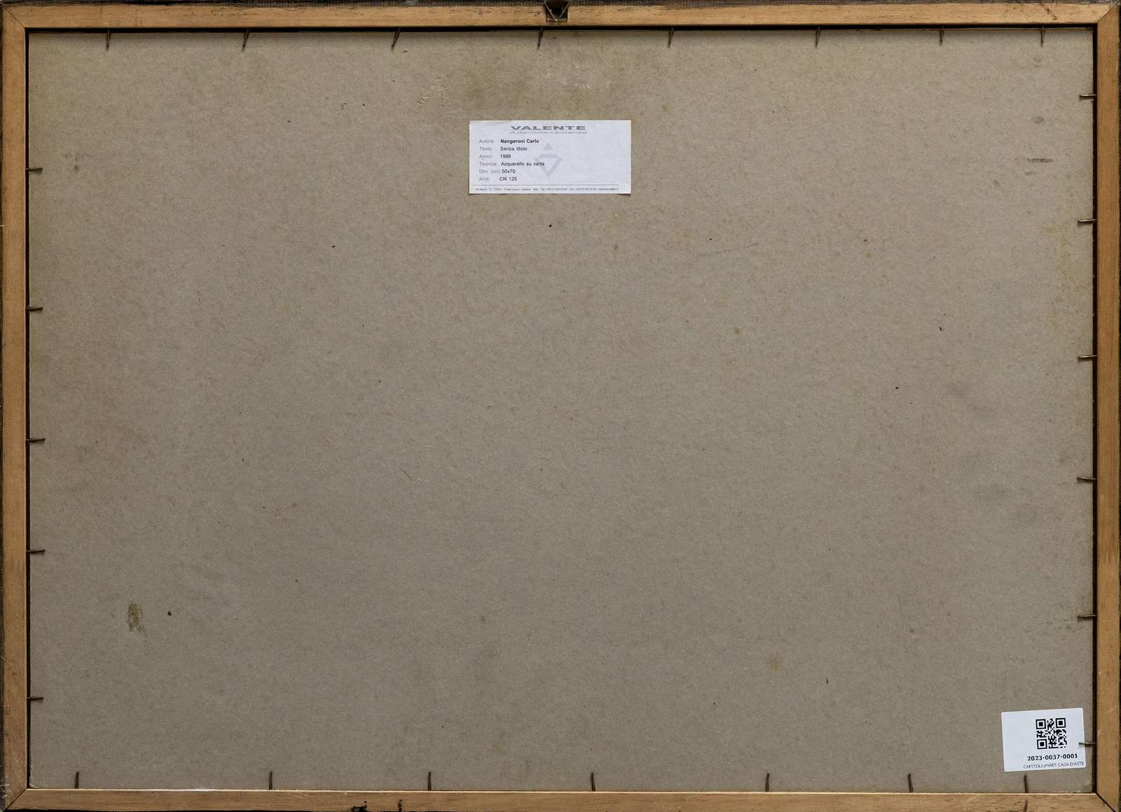 NANGERONI CARLO (n. 1922) Senza titolo. 1986. Acquerello su carta. Cm 70,00 x 50,00. Firma e anno in basso a destra. Al retro cartiglio descrittivo Valente Arte Contemporanea, Finale ligure. Cornice presente