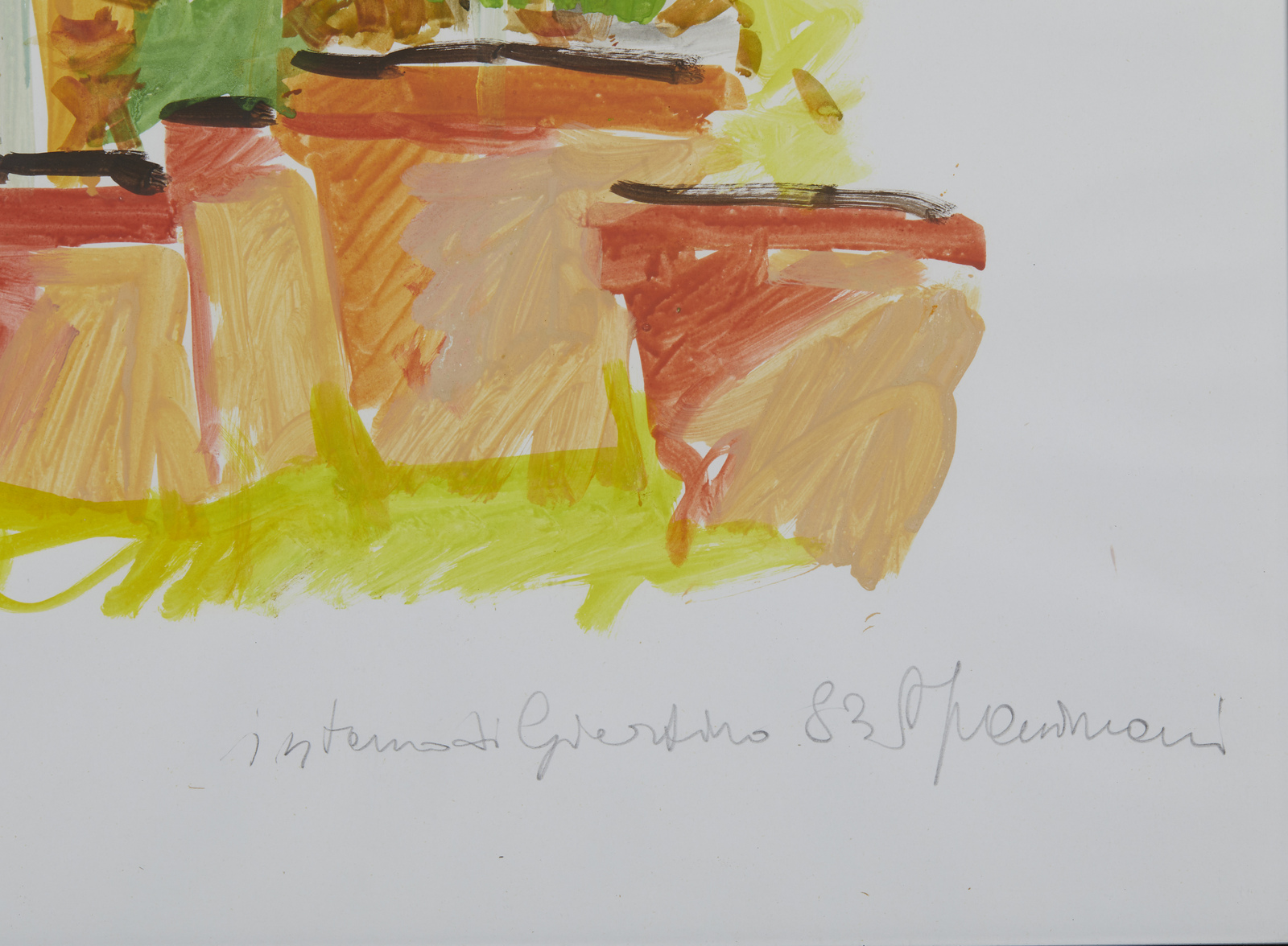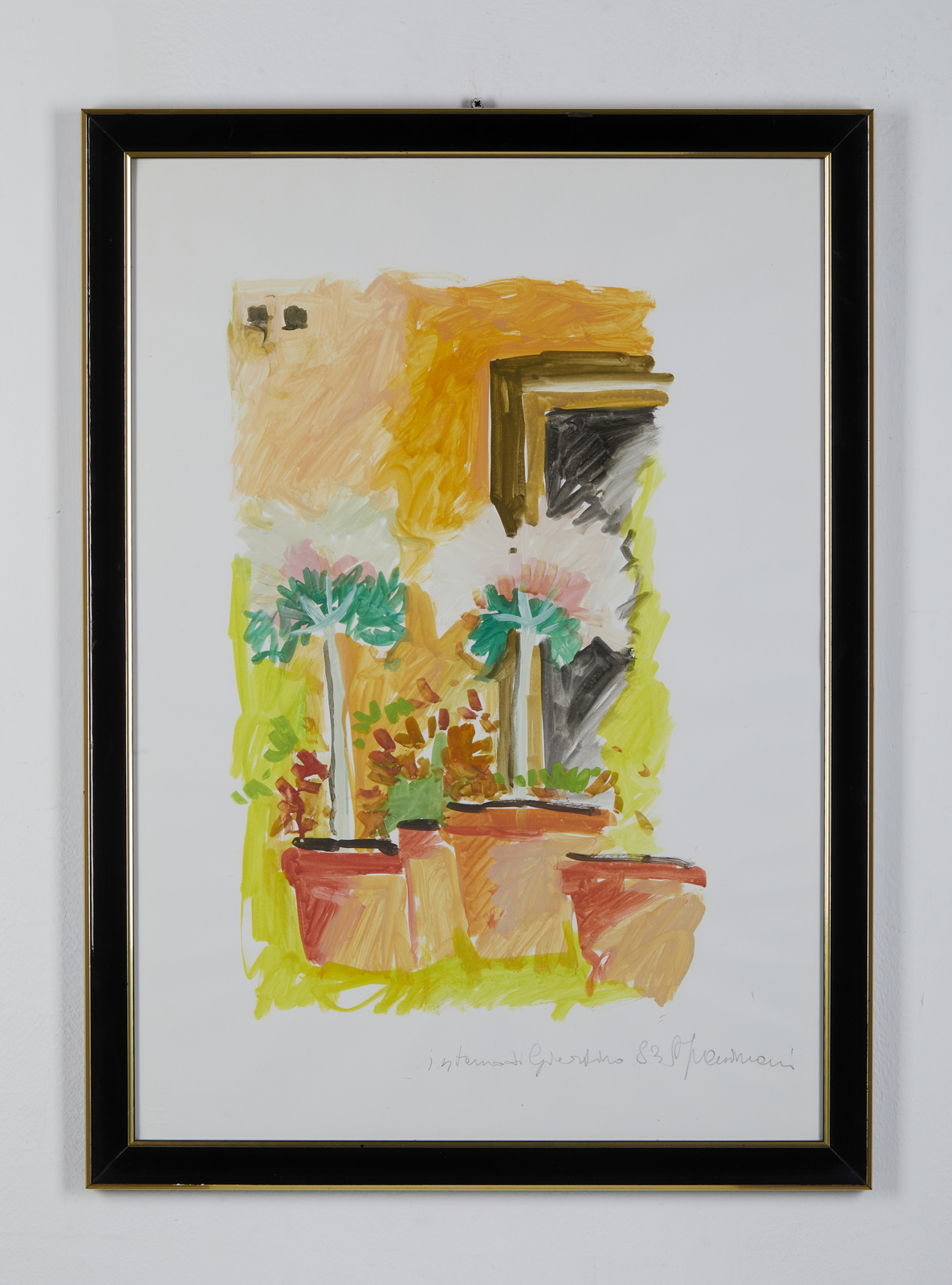 FACCINCANI ATHOS (n. 1951) Interno di giardino. 1983. Tempera su carta. Cm 50,00 x 70,00. Titolo, firma e anno in basso a destra a matita. . Cornice presente