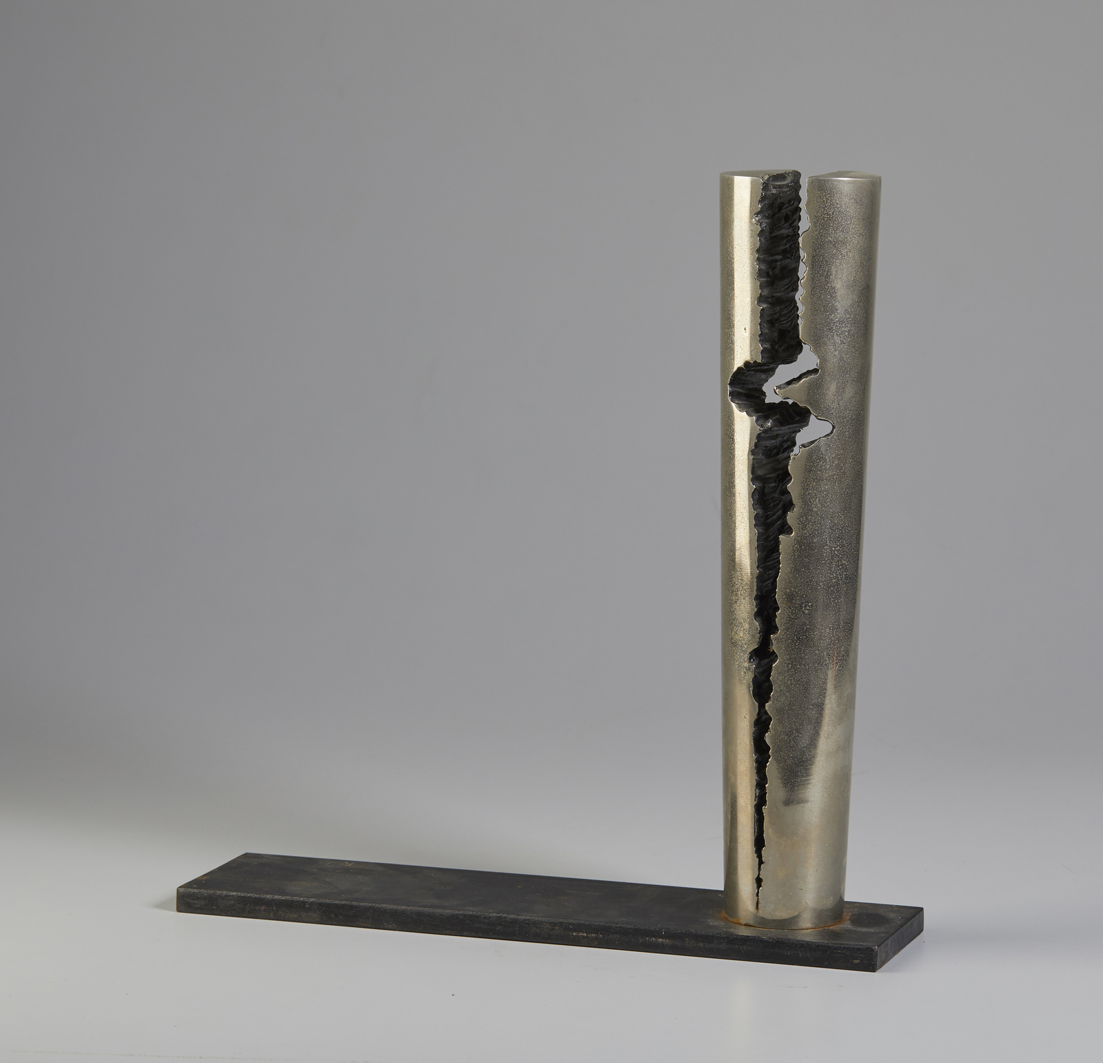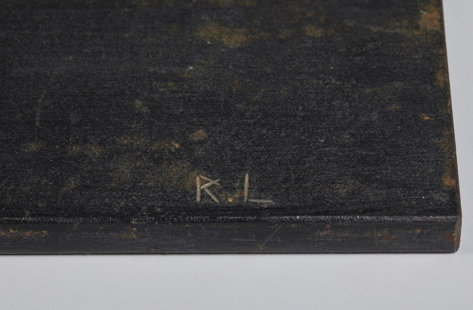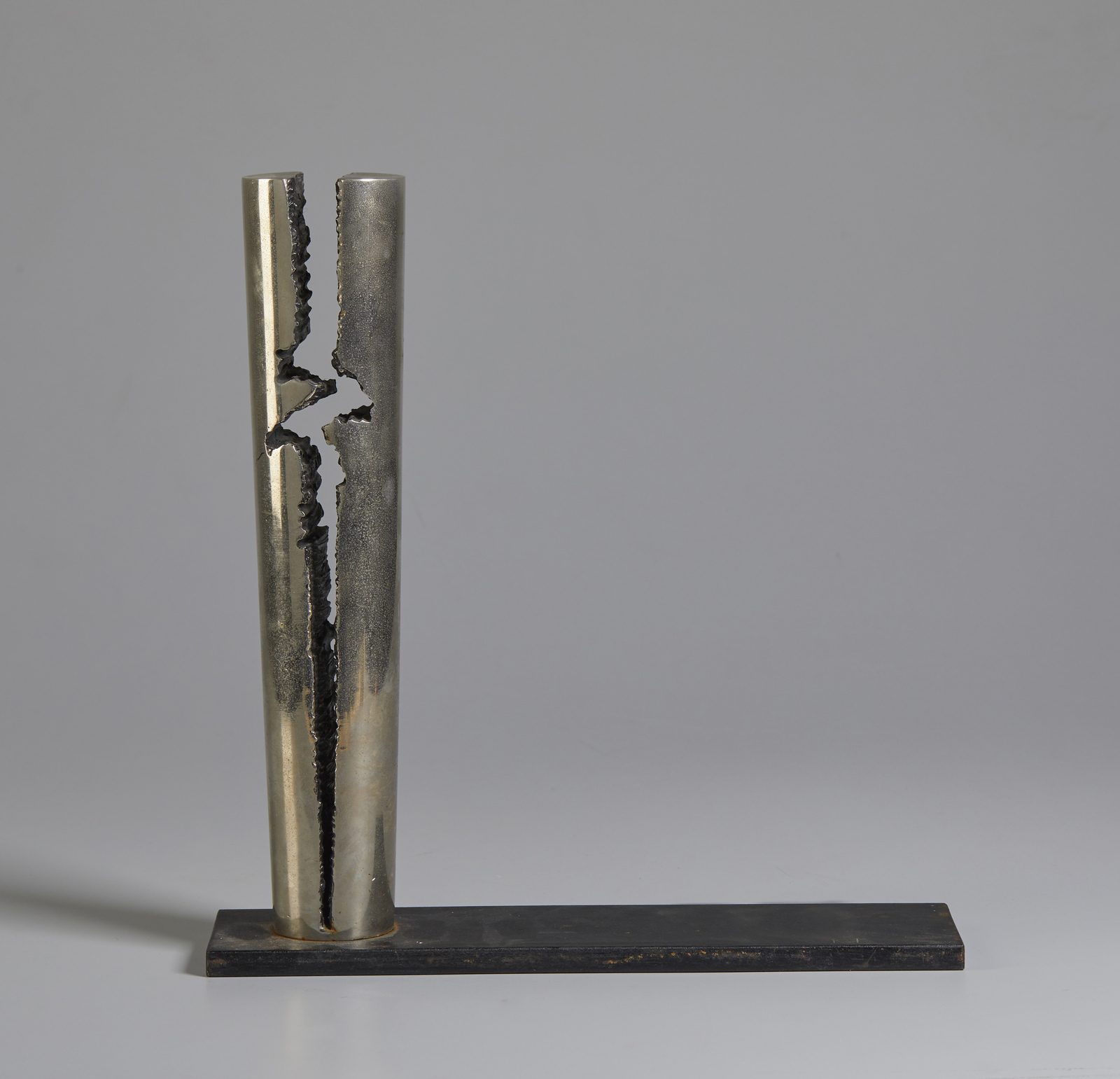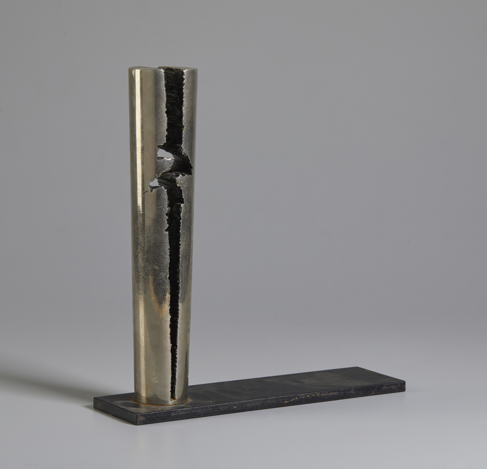 LANARO ROBERTO (n. 1946) Senza titolo. . Ferro e bronzo. Cm 29,70 x 31,00 x 8,00. Firma incisa alla base. Anni '60. Lievi difetti.