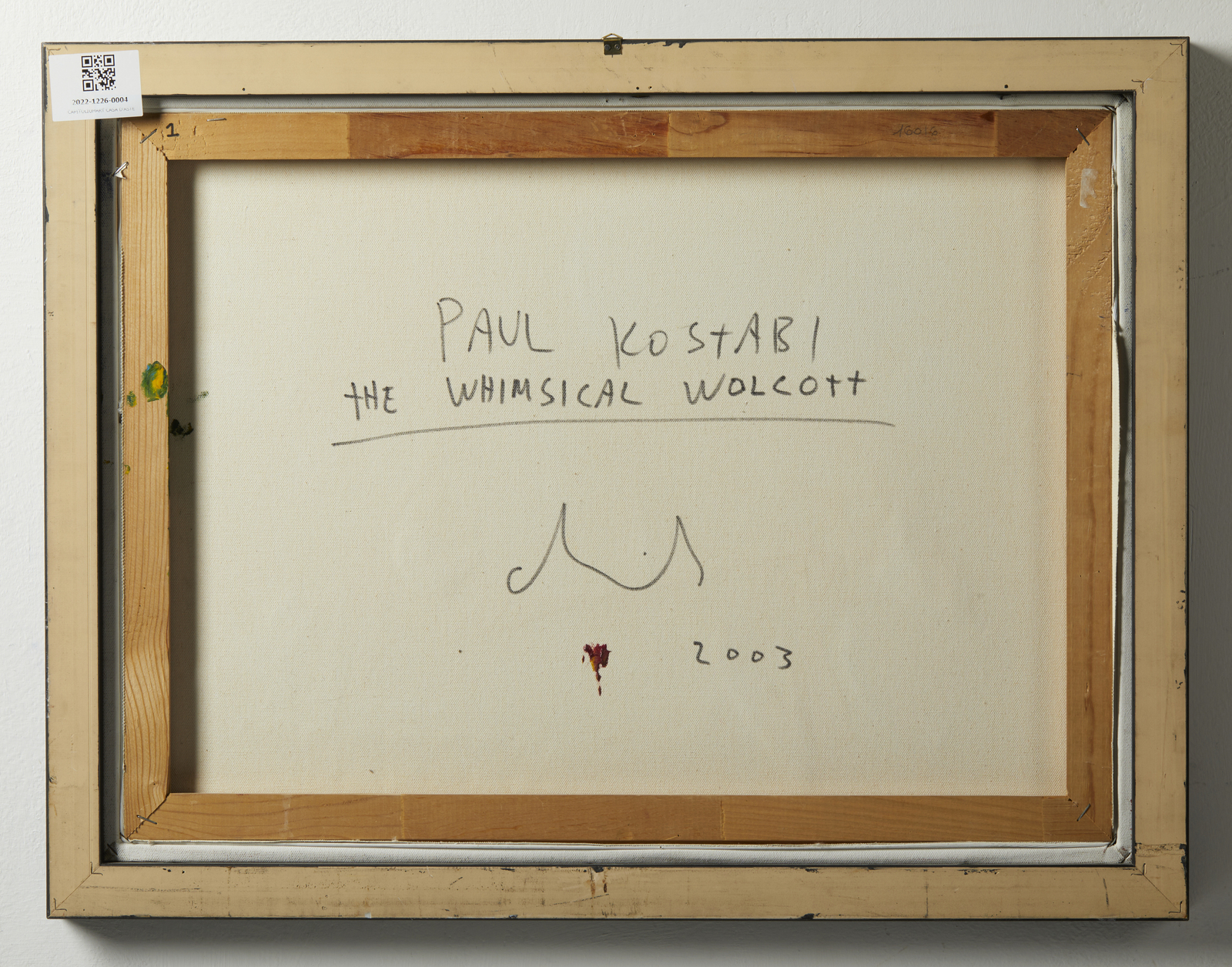 KOSTABI PAUL (n. 1962) The whimsical wolcott. 2003. Olio su tela . Cm 61,00 x 46,00. Firma in basso a destra. Al retro titolo, firma e anno. Autentica dell'artista su fotografia. Lievi difetti. Cornice presente