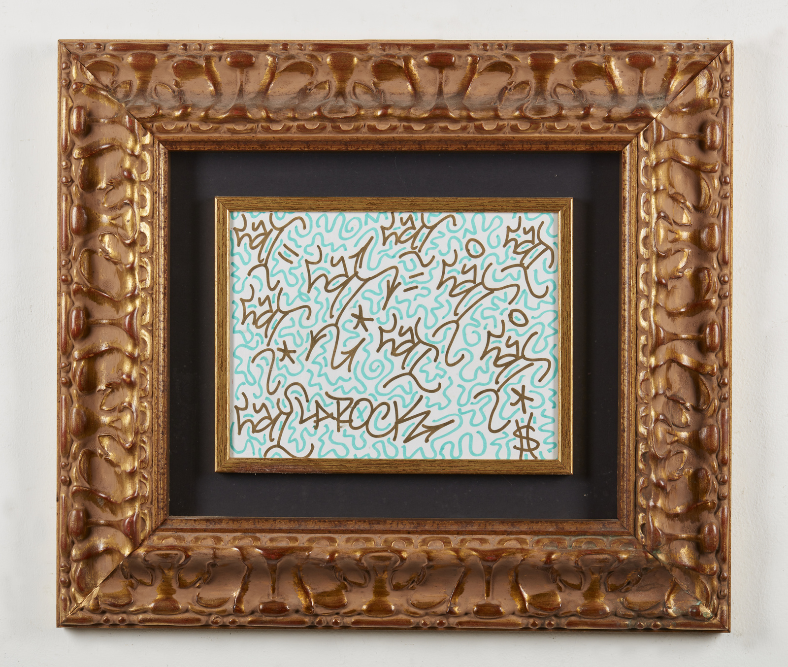 ORTIZ ANGEL (n. 1967) Baby Blues. 2001. Tecnica mista su carta. Cm 31,00 x 23,00. Autentica dell'artista su fotografia. Certificato di autenticità della Follin Gallery riportante la firma dell'artista. Lievi difetti. . Cornice presente