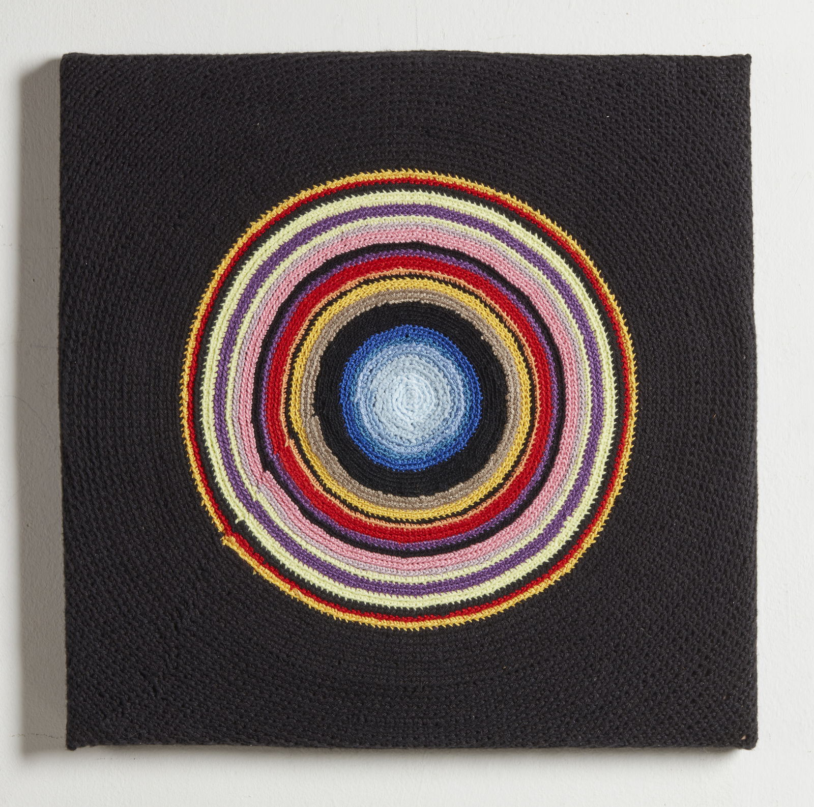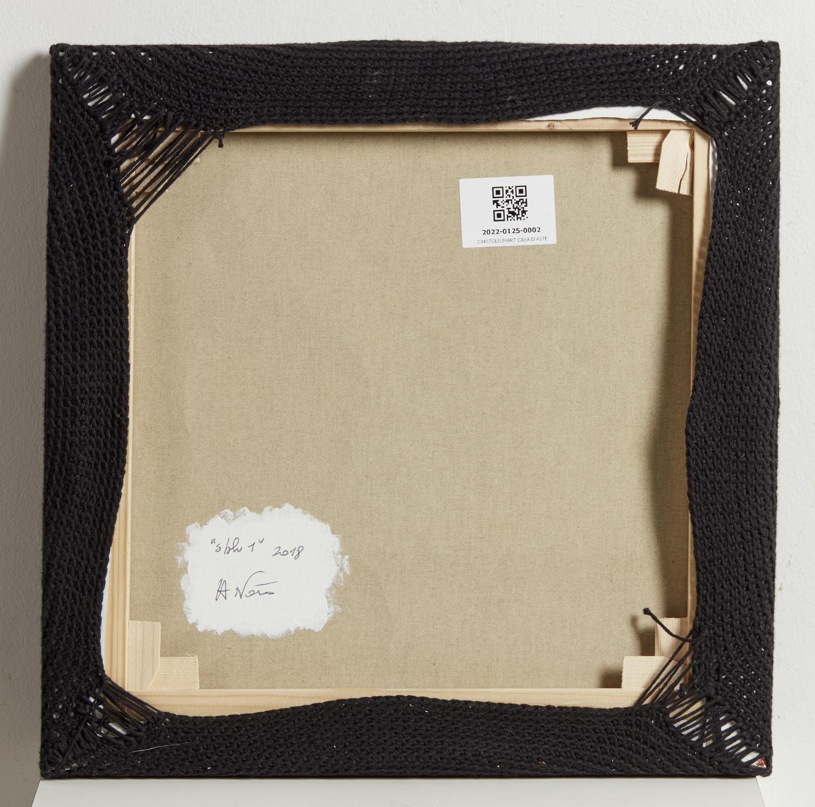 NOTO HERMAN (n. 1967) S-Blu 1. 2018. Filato di cotone ricamato a mano applicato su tela. Cm 60,00 x 40,00. Al retro firma, titolo e anno.