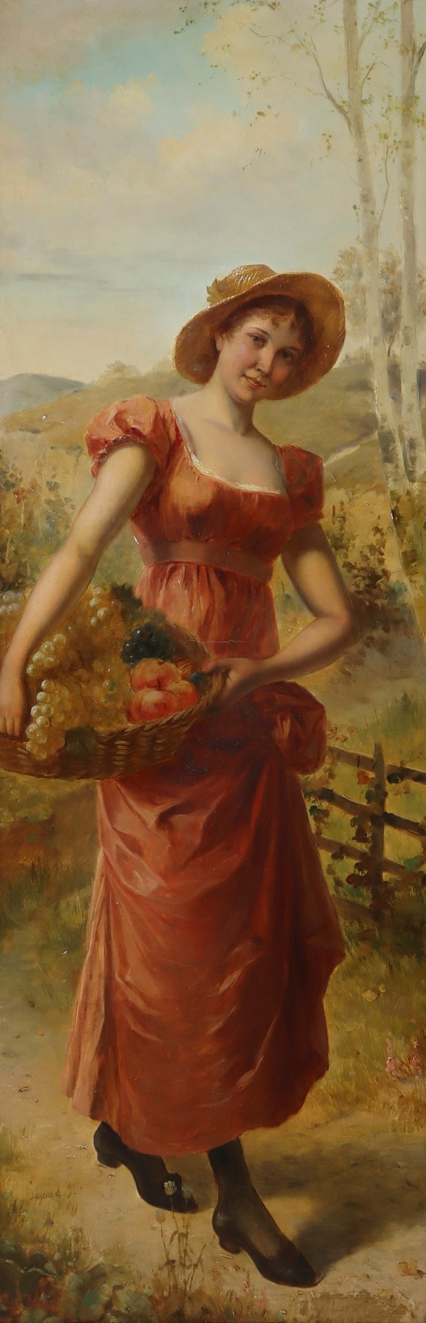 Eugene De Blaas (attribuito a) (Albano Laziale 1844-Venezia 1932) - Figura allegorica dell'autunno cm 100x35; in cornice 117x52 olio su tavola