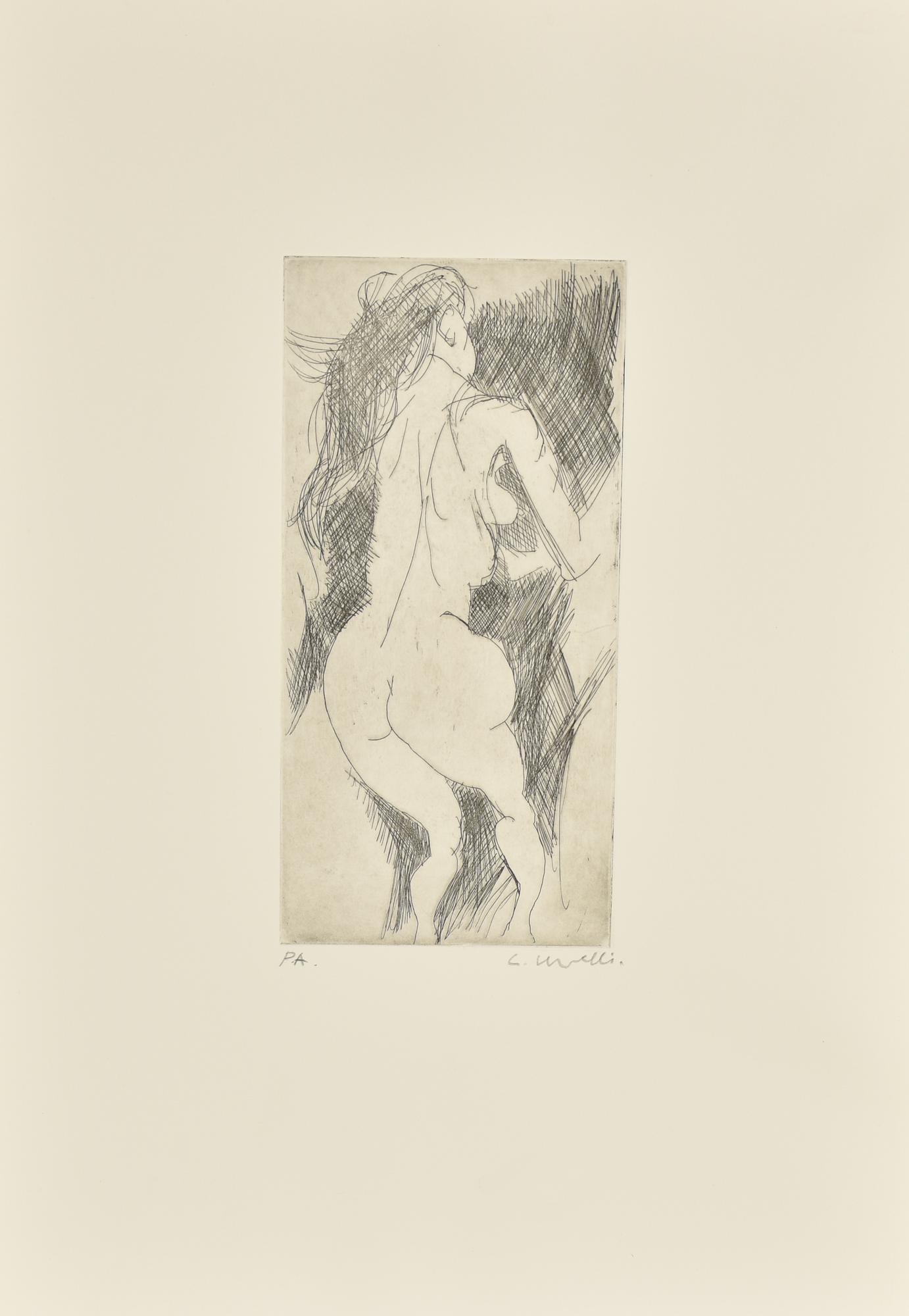 Carlo Morelli STUDIO DI NUDO acquaforte su carta, battuta cm 25x12, su foglio...