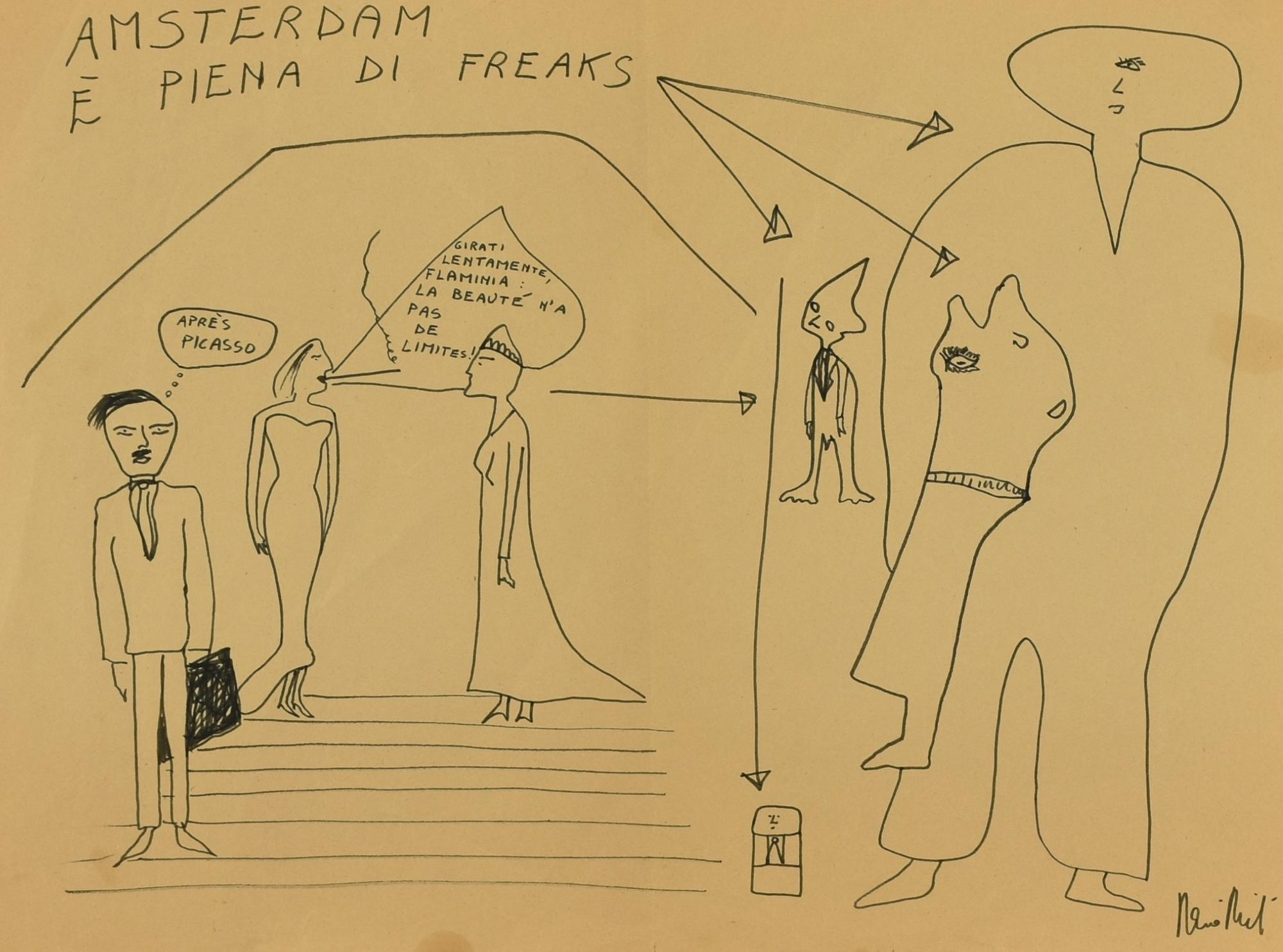 Ignoto AMSTERDAM E' PIENA DI FREAKS penna a feltro su carta, cm 30x40 firma