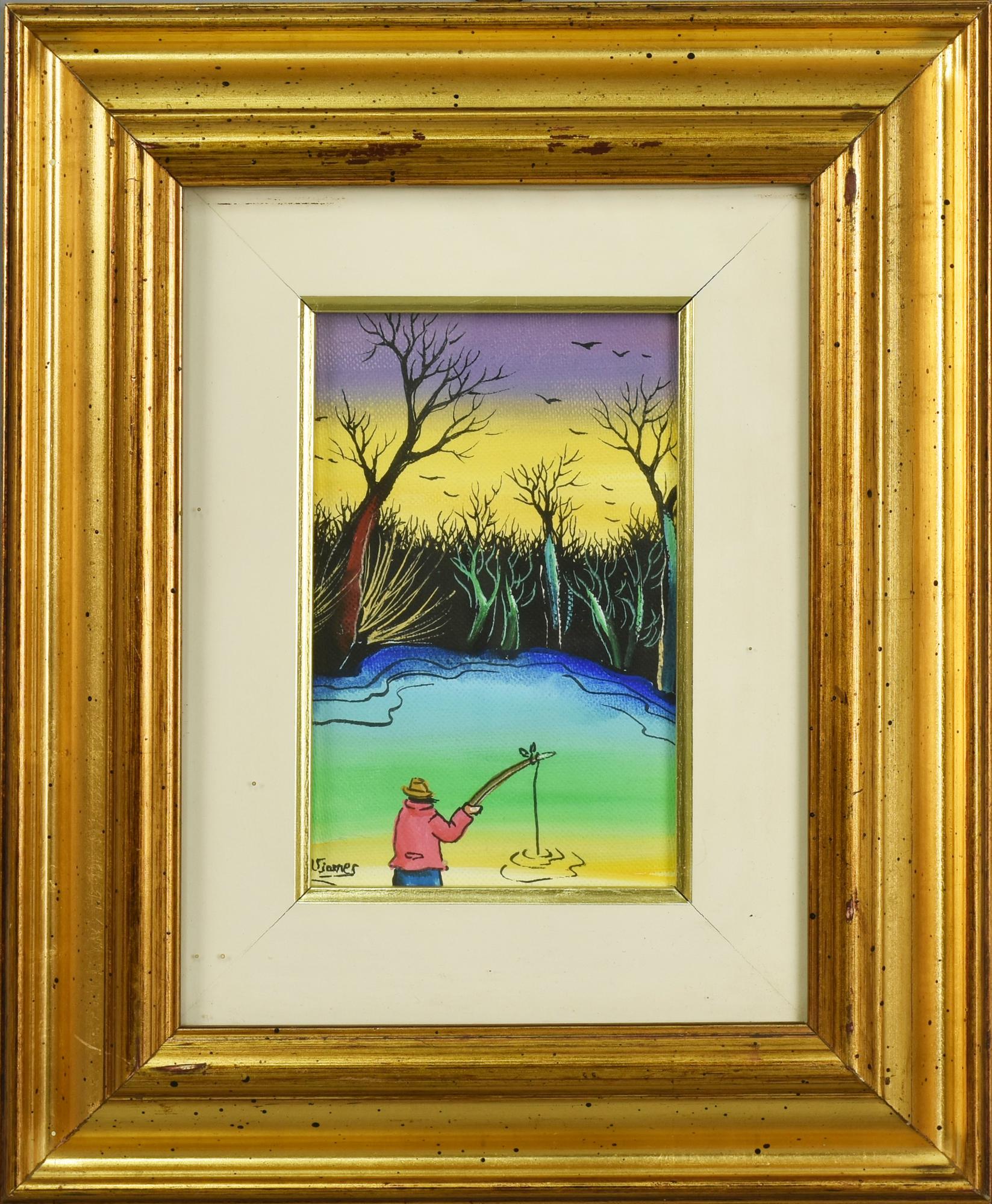 Vianes LA PESCA olio su cartone telato, 15x10cm firma
