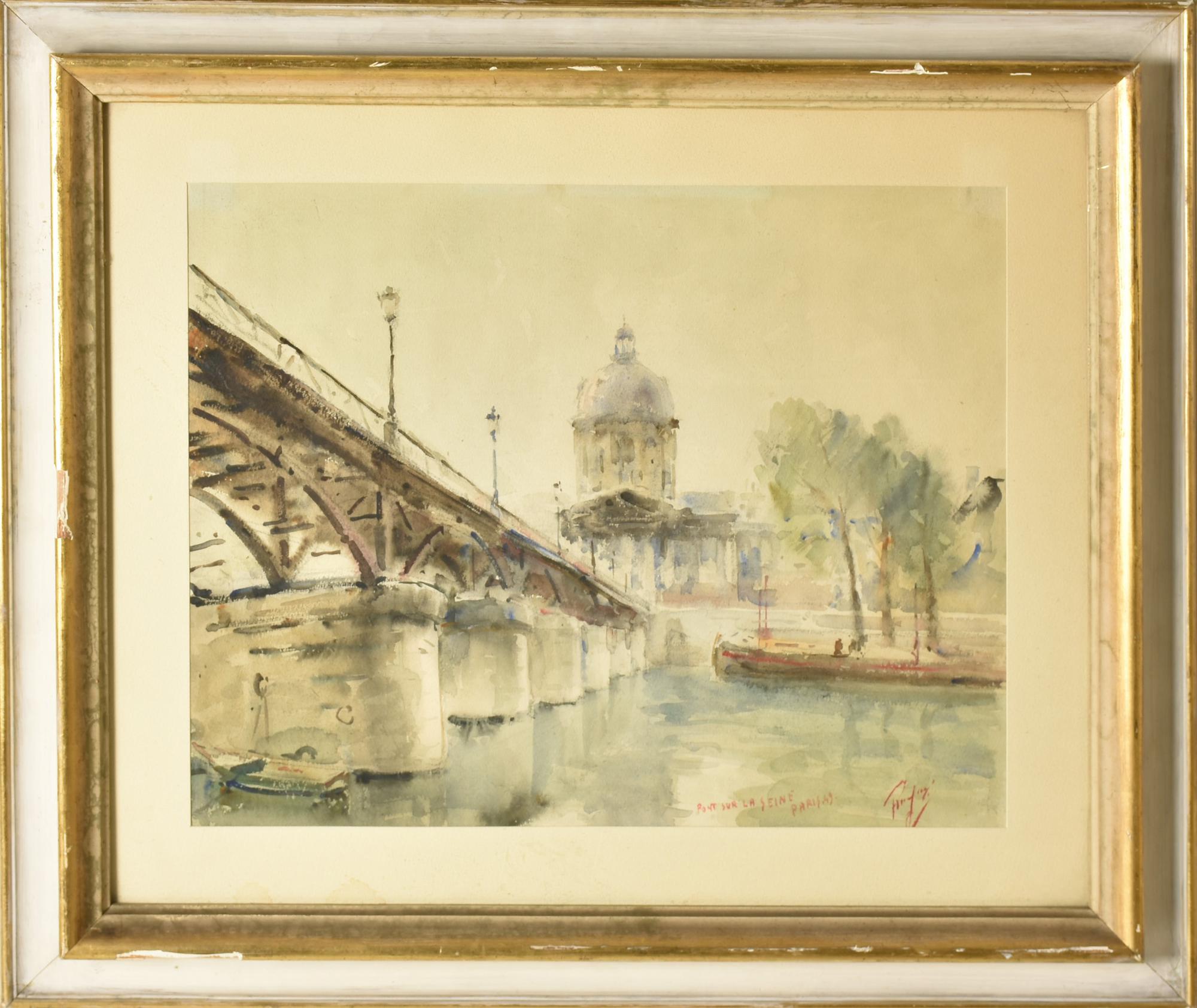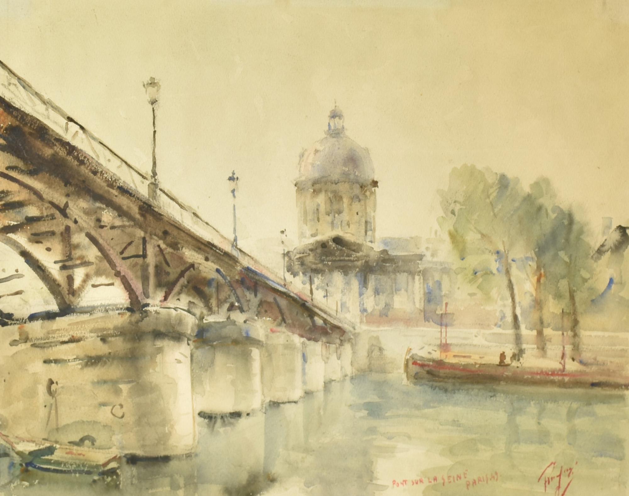 Ignoto PONT SUR LA SEINE PARIS acquerello su carta, cm 40x50 firma, titolo e...