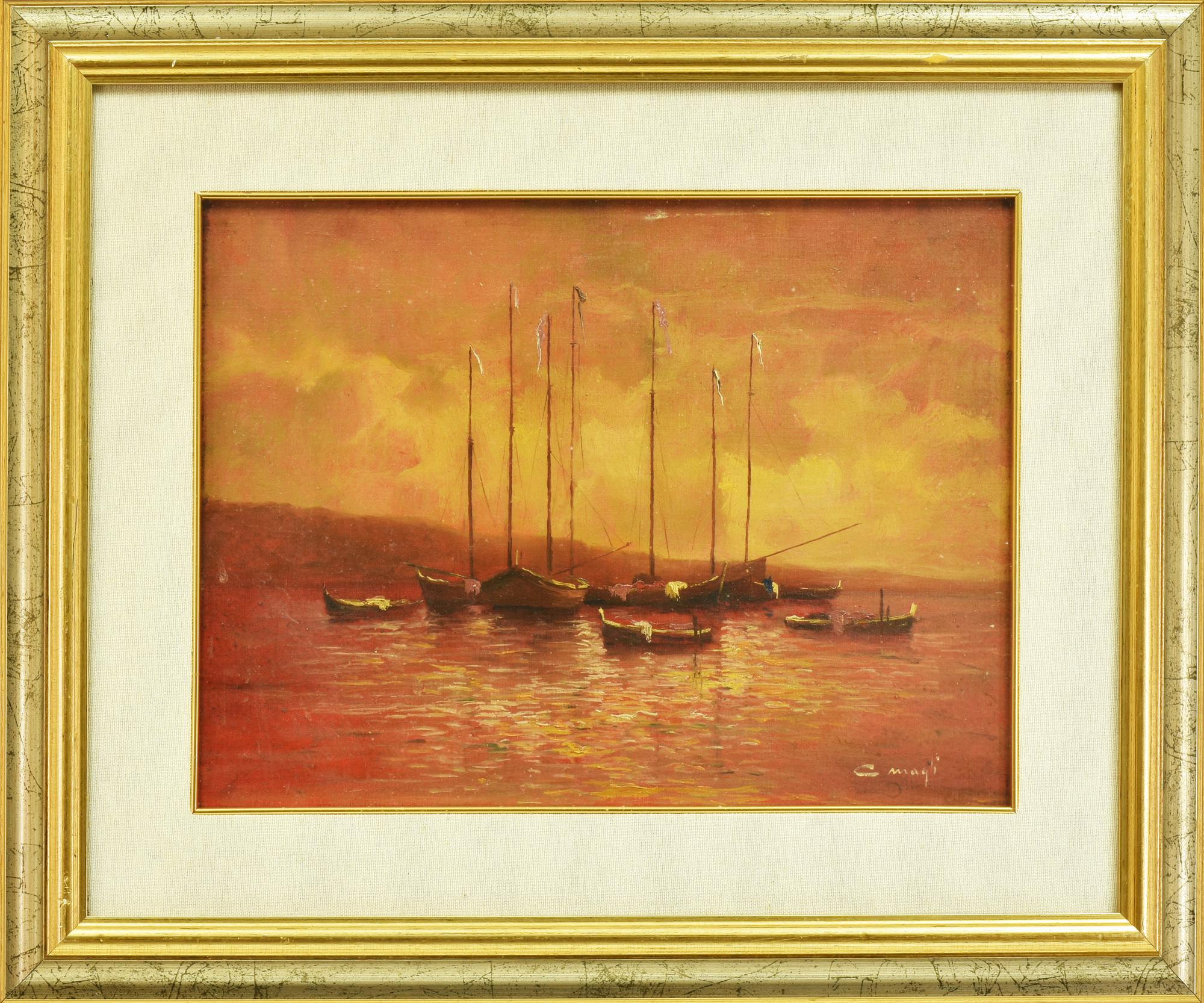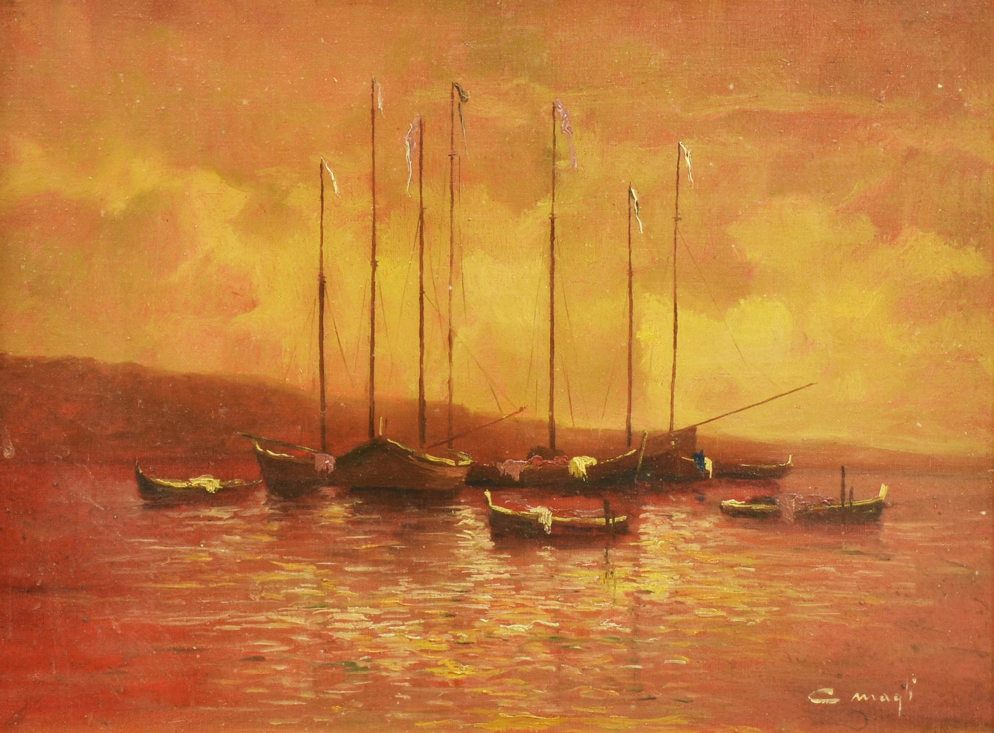Lot 171 | C. Magli BARCHE AL TRAMONTO olio su tela, cm 30x40 firma