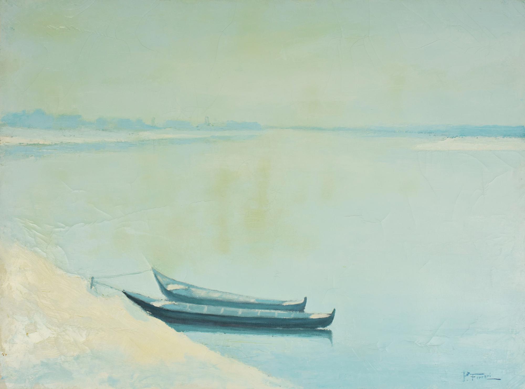 P. Ferrari PAESAGGIO INVERNALE olio su tela, cm 60x80 firma sul retro: firma,...