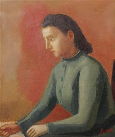 Guidi Virgilio Donna in verde, 1936 olio su tela, cm, 78x63 firmato in basso...