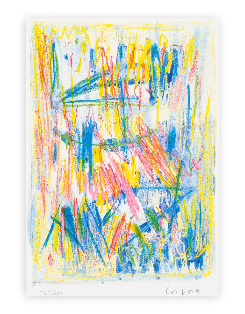 Firma e numerazione (Esemplare 121/200) a matita al fronte