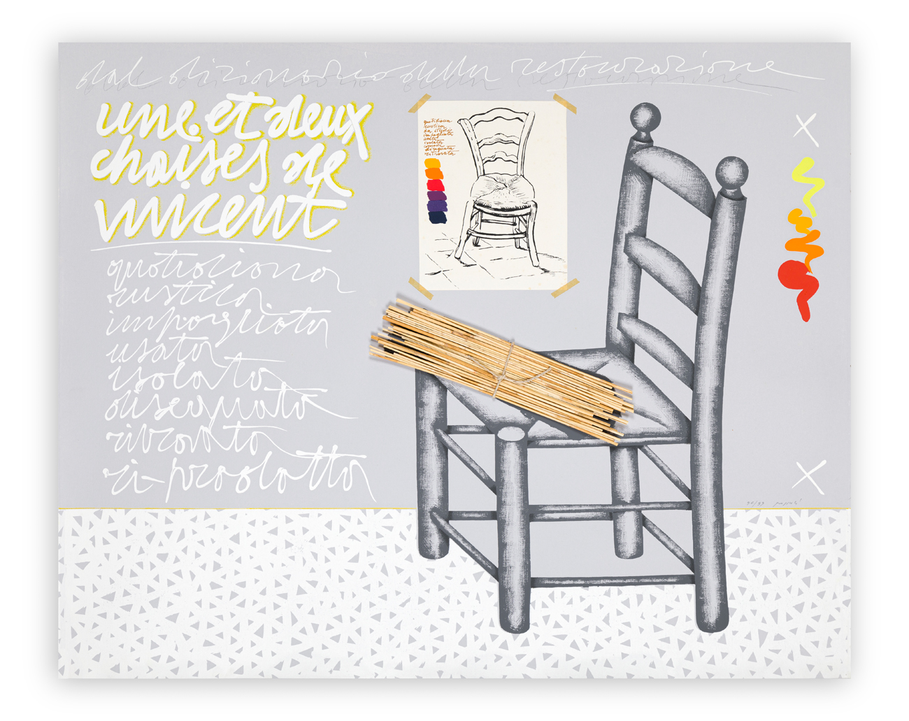 Serigrafia a colori con intervento a paglia applicata