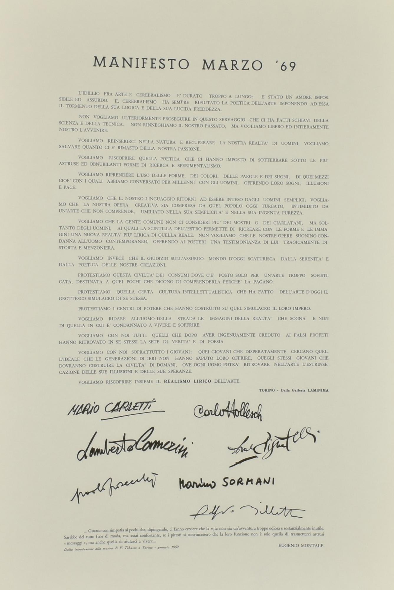 realizzato dalla Galleria Laminima, Torino per il movimento Marzo 69 Realismo Lirico e sottoscritto da vari artisti