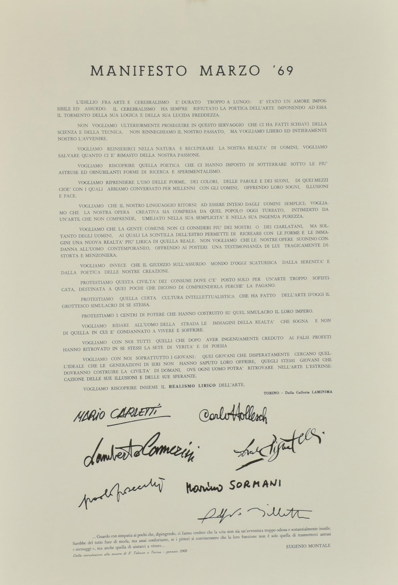 realizzato dalla Galleria Laminima, Torino per il movimento Marzo 69 Realismo Lirico e sottoscritto da vari artisti