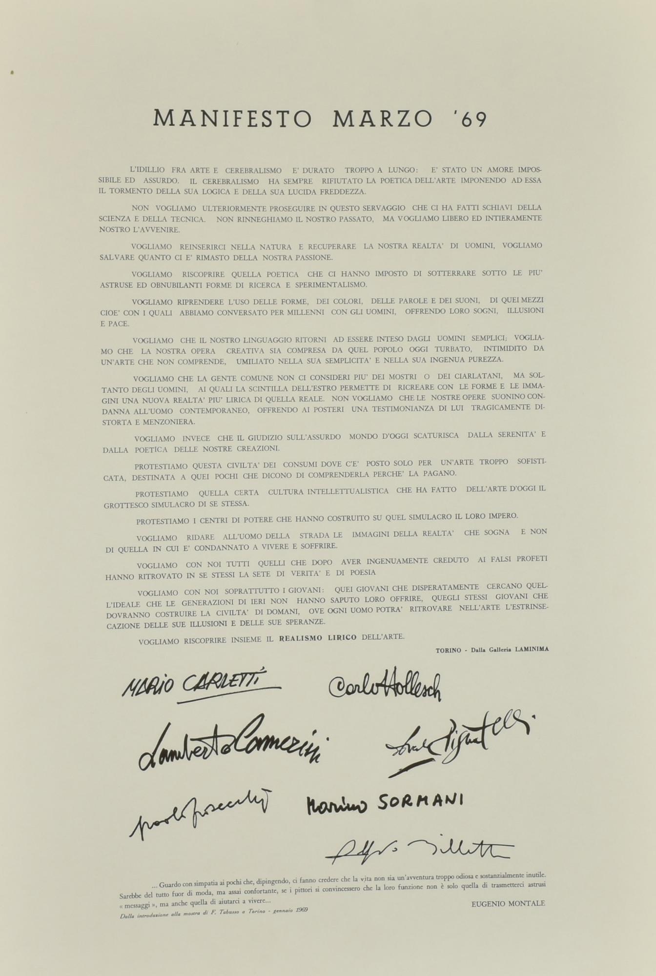 realizzato dalla Galleria Laminima, Torino per il movimento Marzo 69 Realismo Lirico e sottoscritto da vari artisti