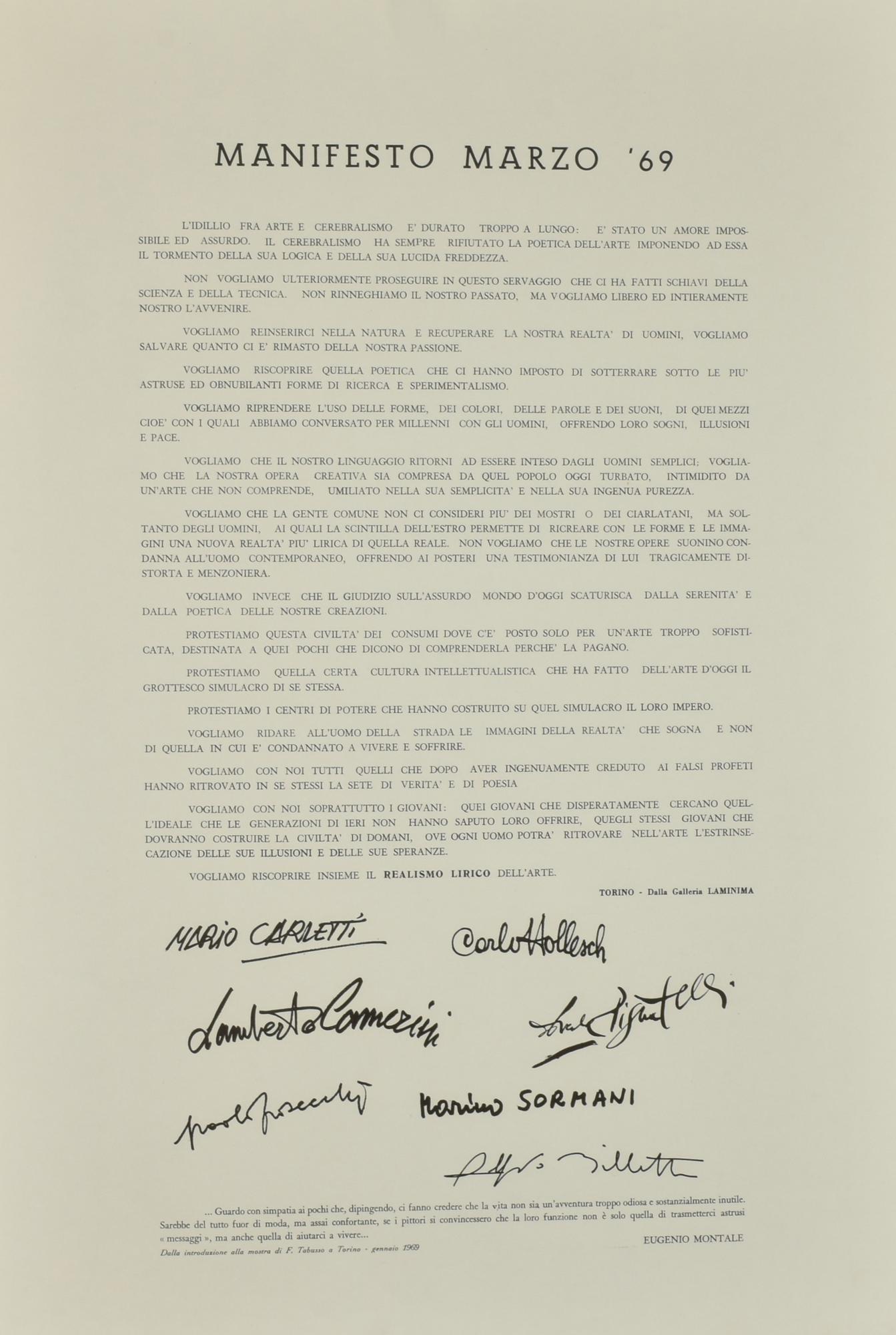 Lot 246 | MANIFESTO MARZO 69 manifesto, cm 69x43 realizzato dalla Galleria Laminima,...