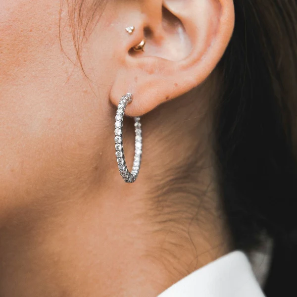 Un punto fermo nella collezione di gioielli di ogni donna: i classici orecchini a cerchio con diamanti. Progettati in oro giallo 14k, questi orecchini sono intarsiati con diamanti autentici, per un totale di 3,00 carati, all'interno e all'esterno del cerchio in modo che brillino da ogni direzione. Pieni di stile e presenza, la loro bellezza senza tempo eleverà qualsiasi outfit e fornirà quel tocco in più che ti sei perso. In coppia. - cP3736Y