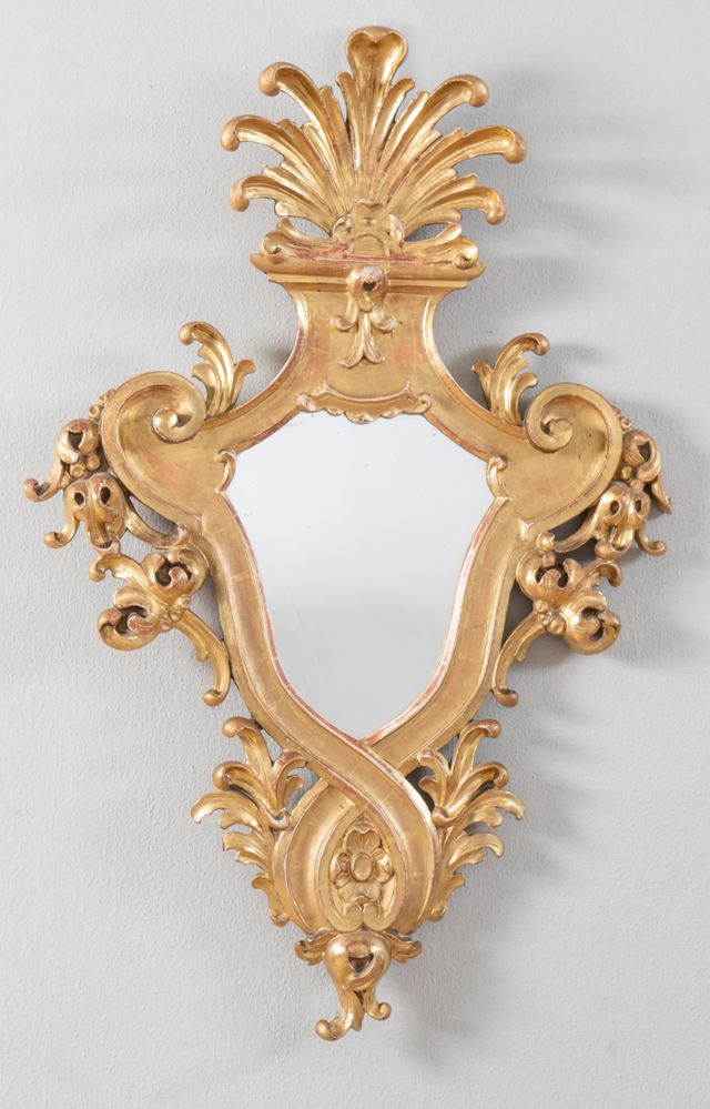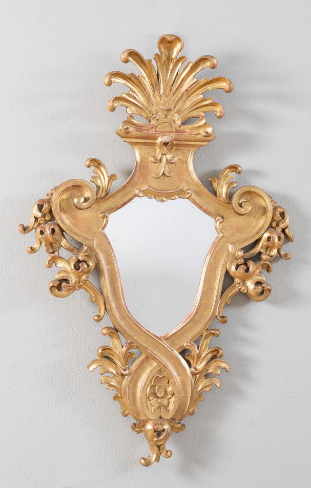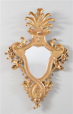 Specchiera in legno intagliato e dorato. Bologna, XIX secolo. Cm 93,5x62.