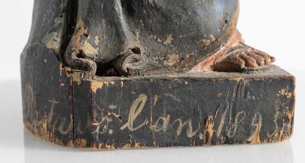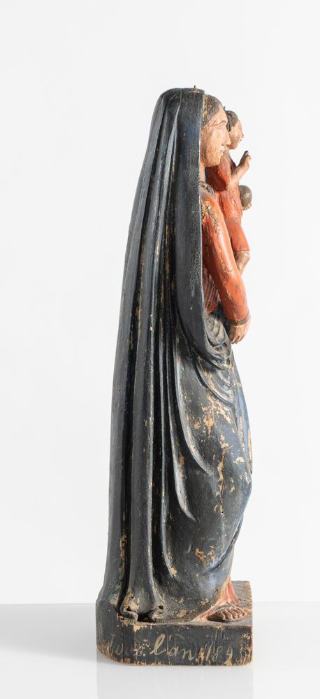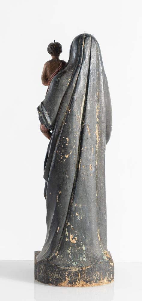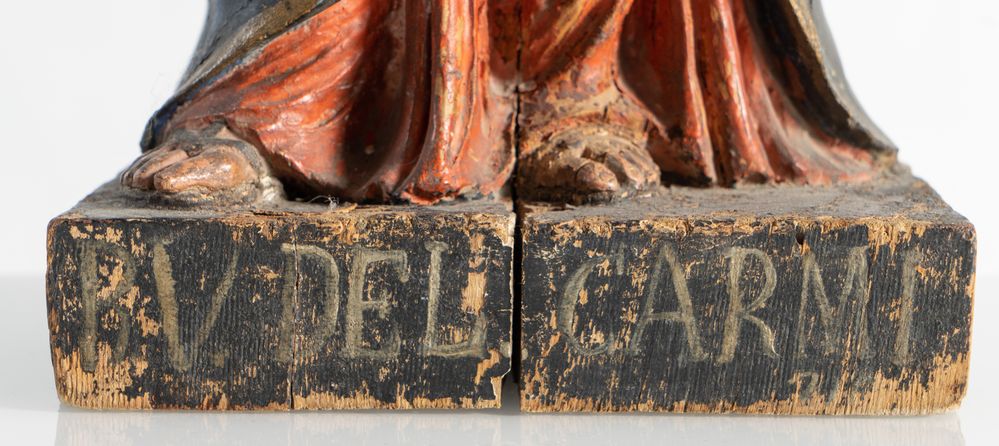 Madonna del Carmine. Scultura in legno intagliato. Fine del XVIII secolo - inizio del XIX secolo. Reca scritta Madonna del Carmine, restaurata nell'anno 1893 da Borghi Teodorio. Cm 53x17,5x15. (restauri)
