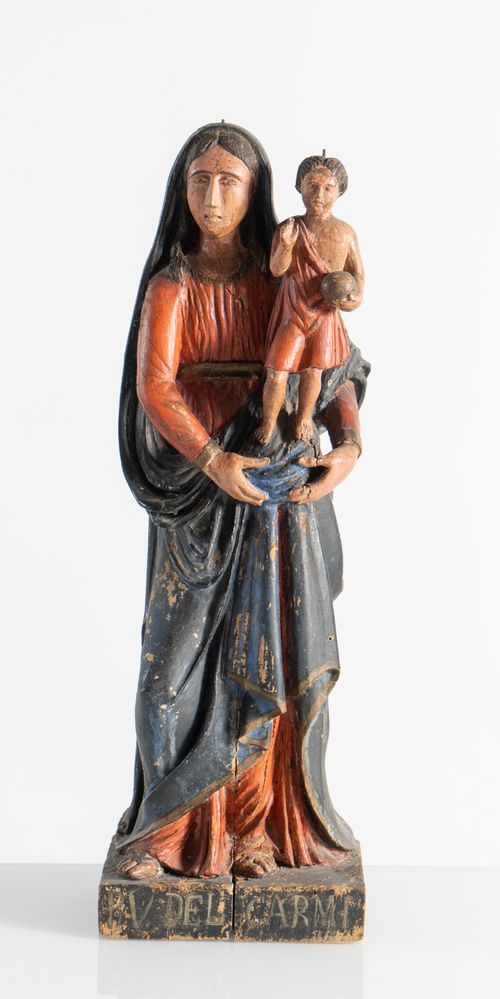 Madonna del Carmine. Scultura in legno intagliato. Fine del XVIII secolo -...