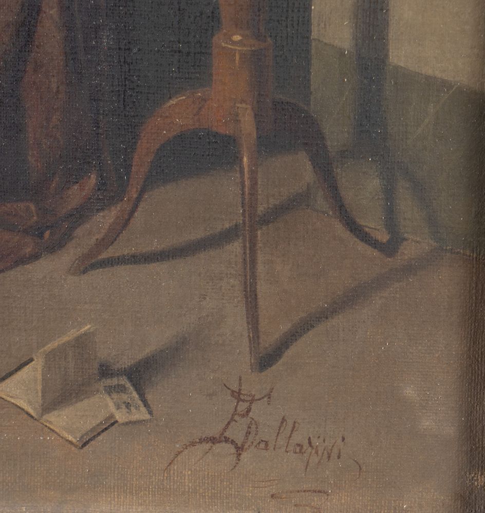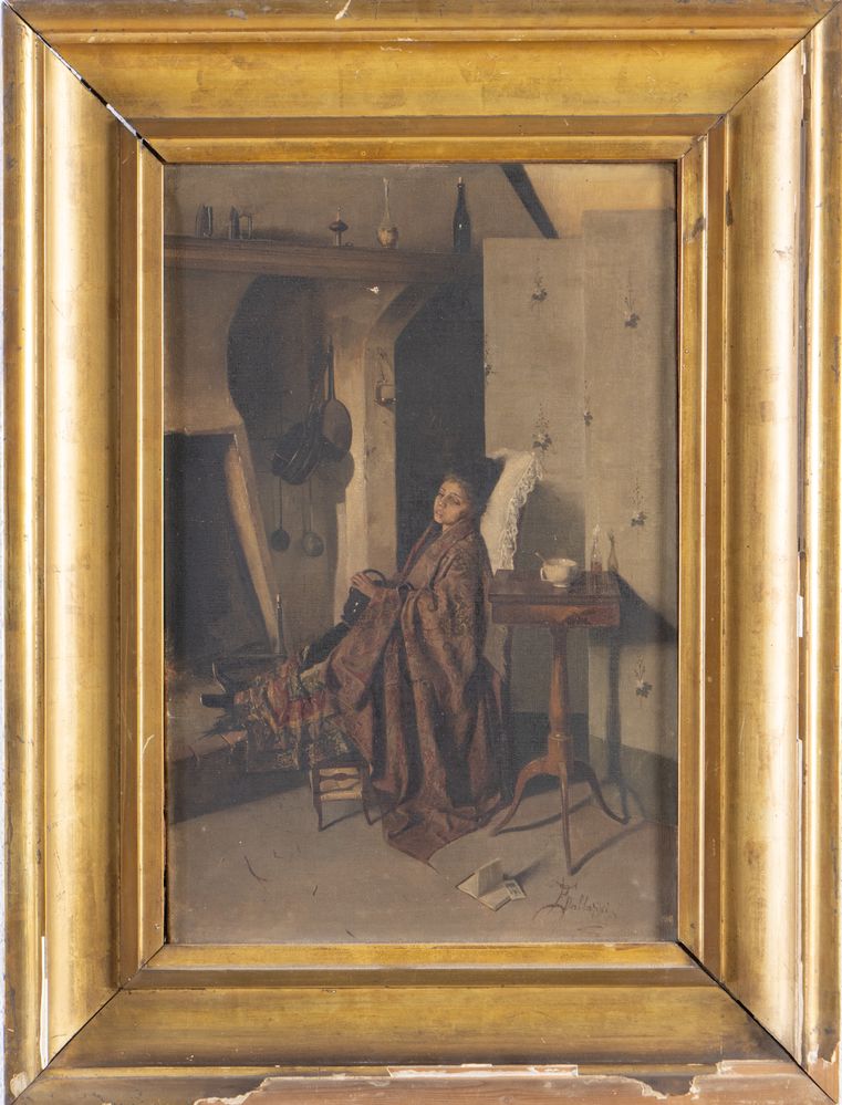 BALLARINI (XIX secolo) "Scena d'interno". Olio su tela. Cm 50x33. Opera firmata in basso a destra E Ballarini.
