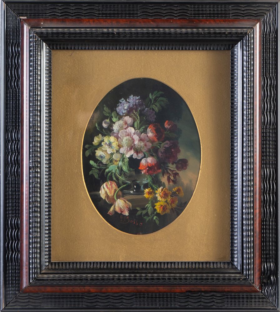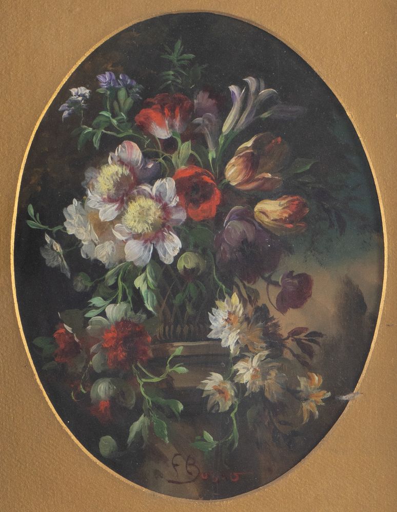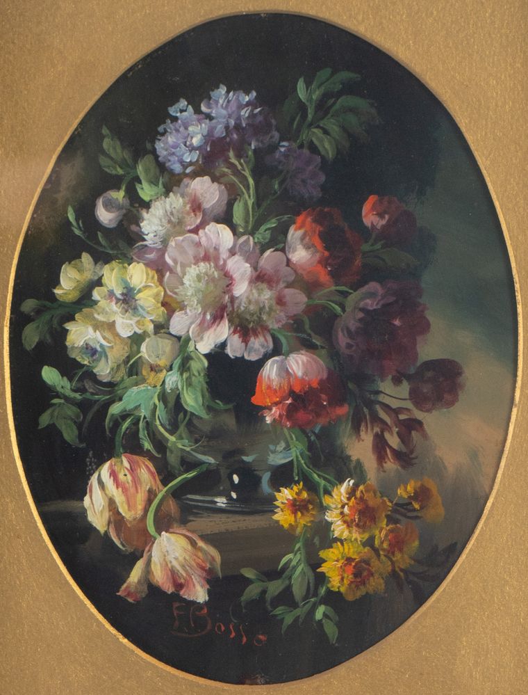 FRANCESCO BOSSO (Vercelli 1864 - Torino 1933) Coppia di nature morte. Olio su tavola. Rispettivamente di cm 23,5x18 e cm 23,5x18. Entrambe firmate in basso al centro F. Bosso.