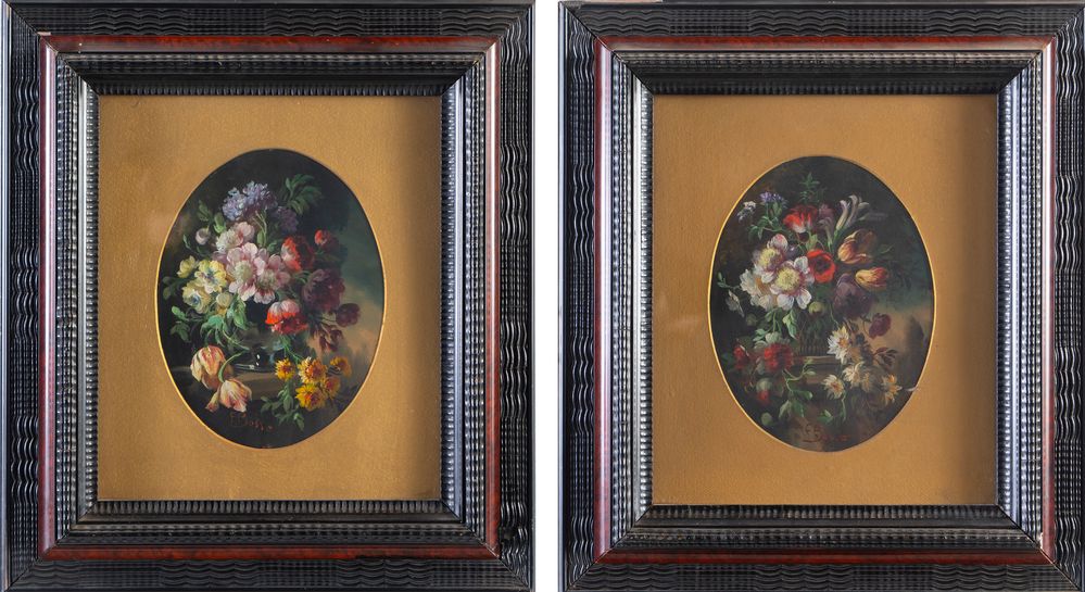 FRANCESCO BOSSO (Vercelli 1864 - Torino 1933) Coppia di nature morte. Olio su...