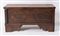 Cassapanca in legno di castagno. Area alpina, inizi del XVIII secolo. Cm 72,5x143x53,5.