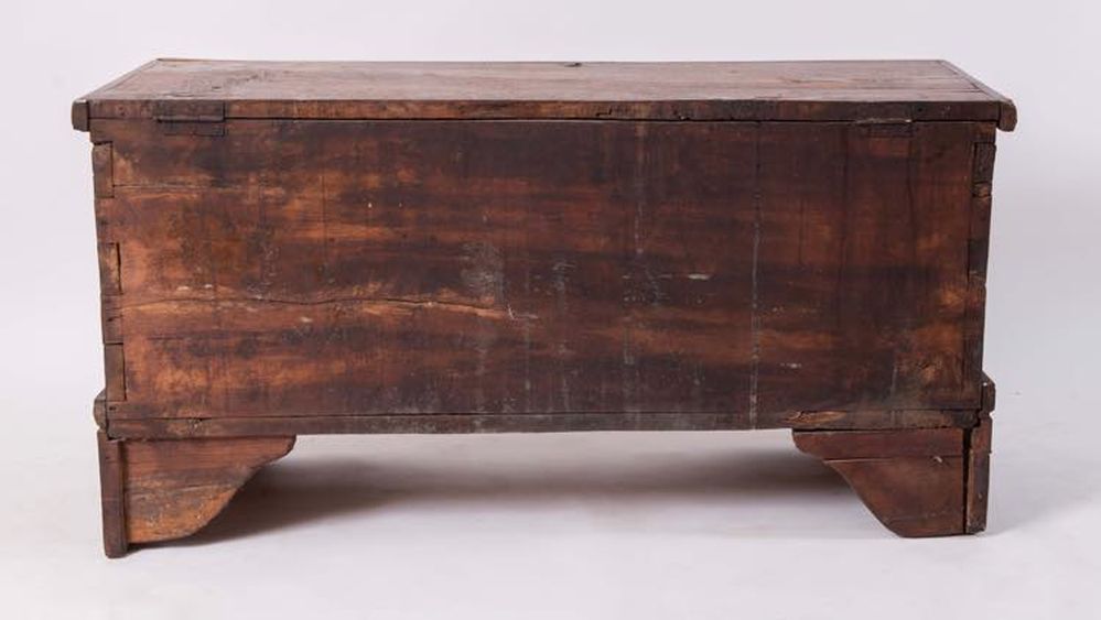 Cassapanca in legno di castagno. Area alpina, inizi del XVIII secolo. Cm...
