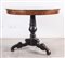 Tavolo rotondo con rosone intagliato filettato in legni esotici. Piano in massello di noce, piede ebanizzato impreziosito con applicazioni di bronzo. Emilia- Lombardia, prima metà del XIX secolo. Cm 80x100.