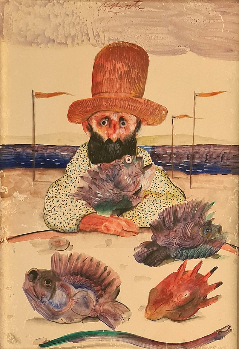 Antonio Possenti, 'Uomo e pesci sulla spiaggia', Anni '60
