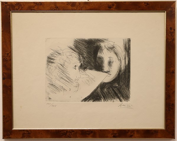 Manzù - Tamburi Lotto composto da un'acquaforte raffigurante due volti (foglio c