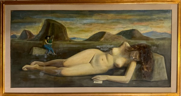 Luigi Filocamo "Nudo femminile" 1946 tecnica mista su tavola cm 75x155 firmata e