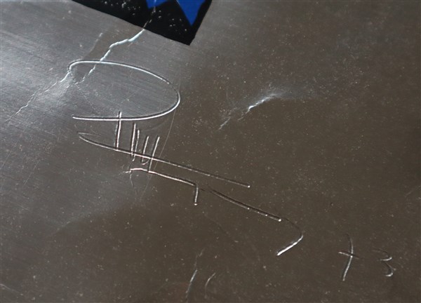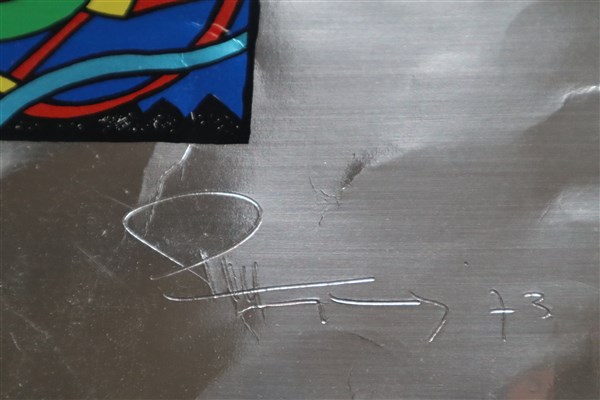 Firma indecifrata "Senza titolo" 1973, litografia su carta argentata