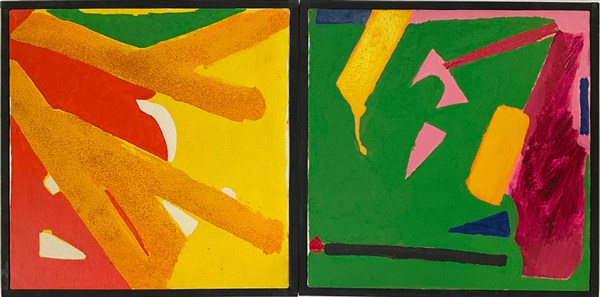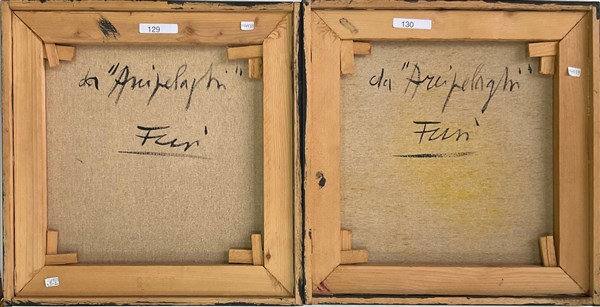 Walter Fusi "Arcipelaghi" due dipinti ad acrilico su tela cm 35x35 firmati e ti