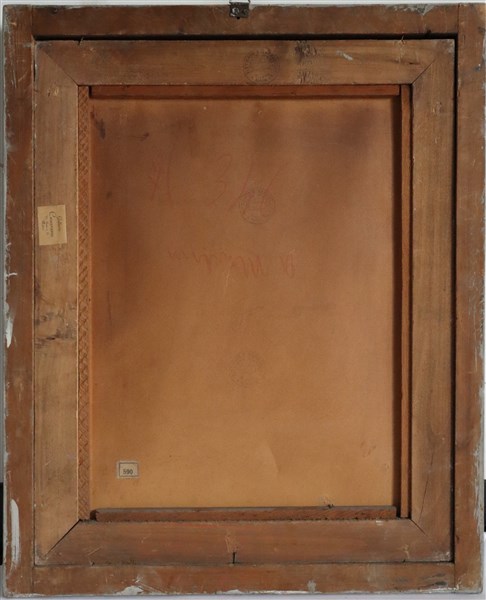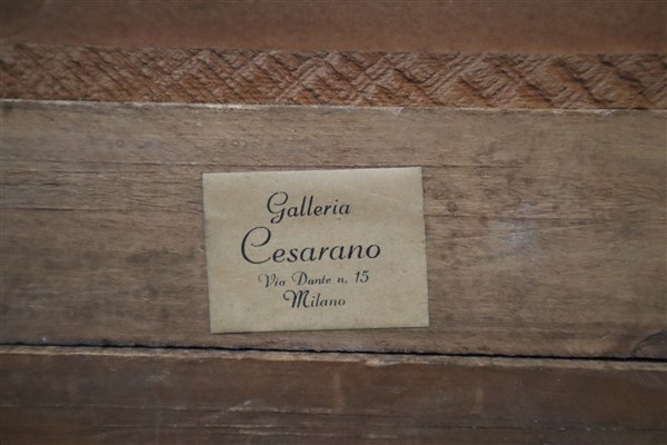firmata e datata a sinistra a matita, dalla rivista "Valori Plastici" edizione francese, Roma, 1920. Timbro al verso di Vittorio Emanuele Barbaroux, Milano ed etichetta della Galleria Cesarano, Milano. In cornice (difetti)