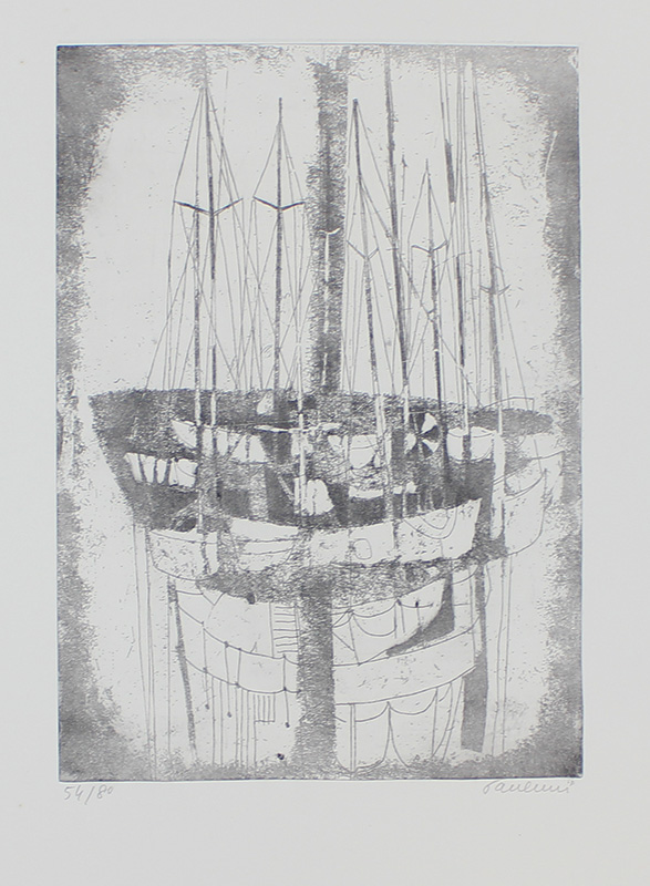 Paulucci Enrico Vele in porto, 1969 acquaforte su carta, cm. 70x50, es. 54/100 firmata in basso a destra, certificato di autenticità della Graphis Arte - Livorno