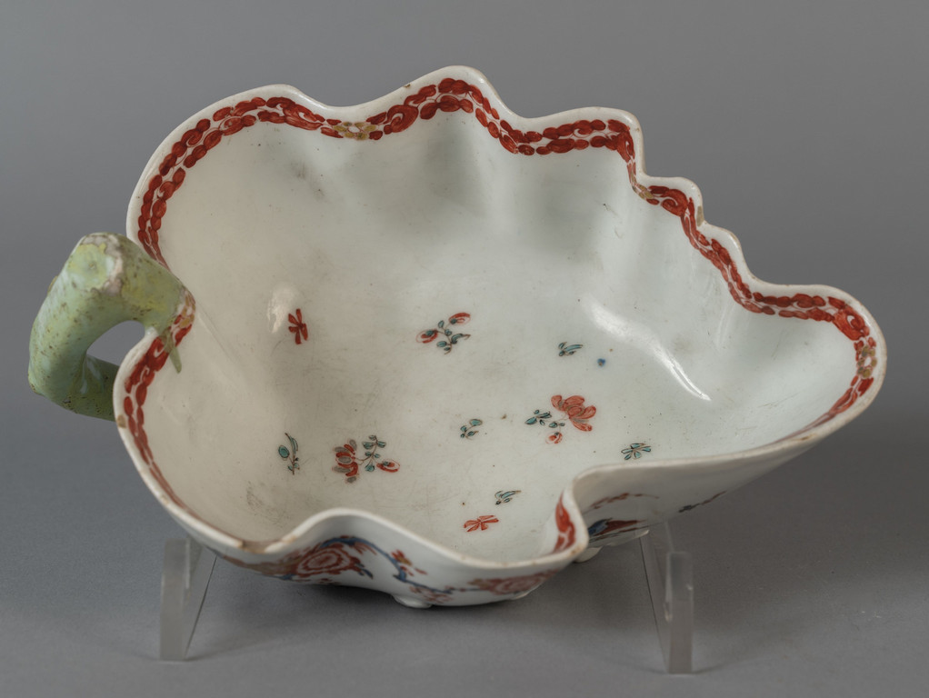 Grande salsiera in porcellana bianca a forma di foglia, Chelsea circa 1750
