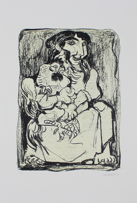 Cantatore Domenico Donna col gallo, 1971 litografia a 2 colori su carta, cm....