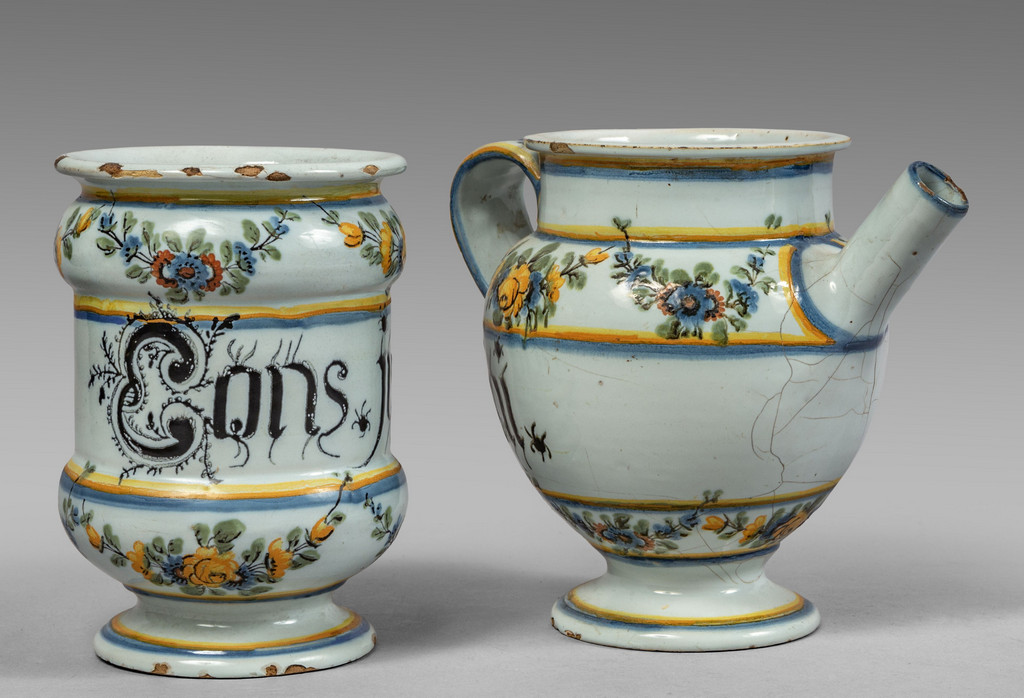 Brocca ed albarello in ceramica, Torino sec.XVIII