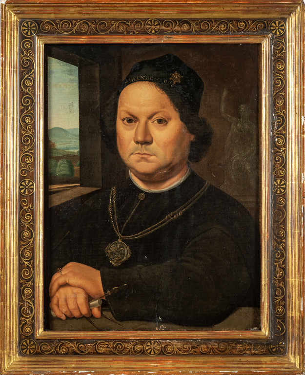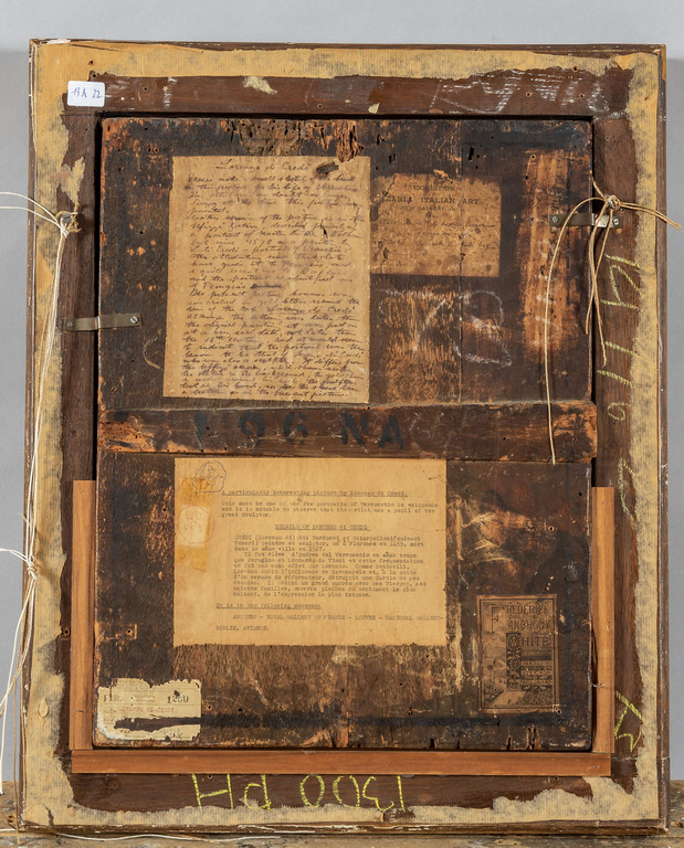"Ritratto del Verrocchio" olio su tela applicata su tavola, sec.XIX